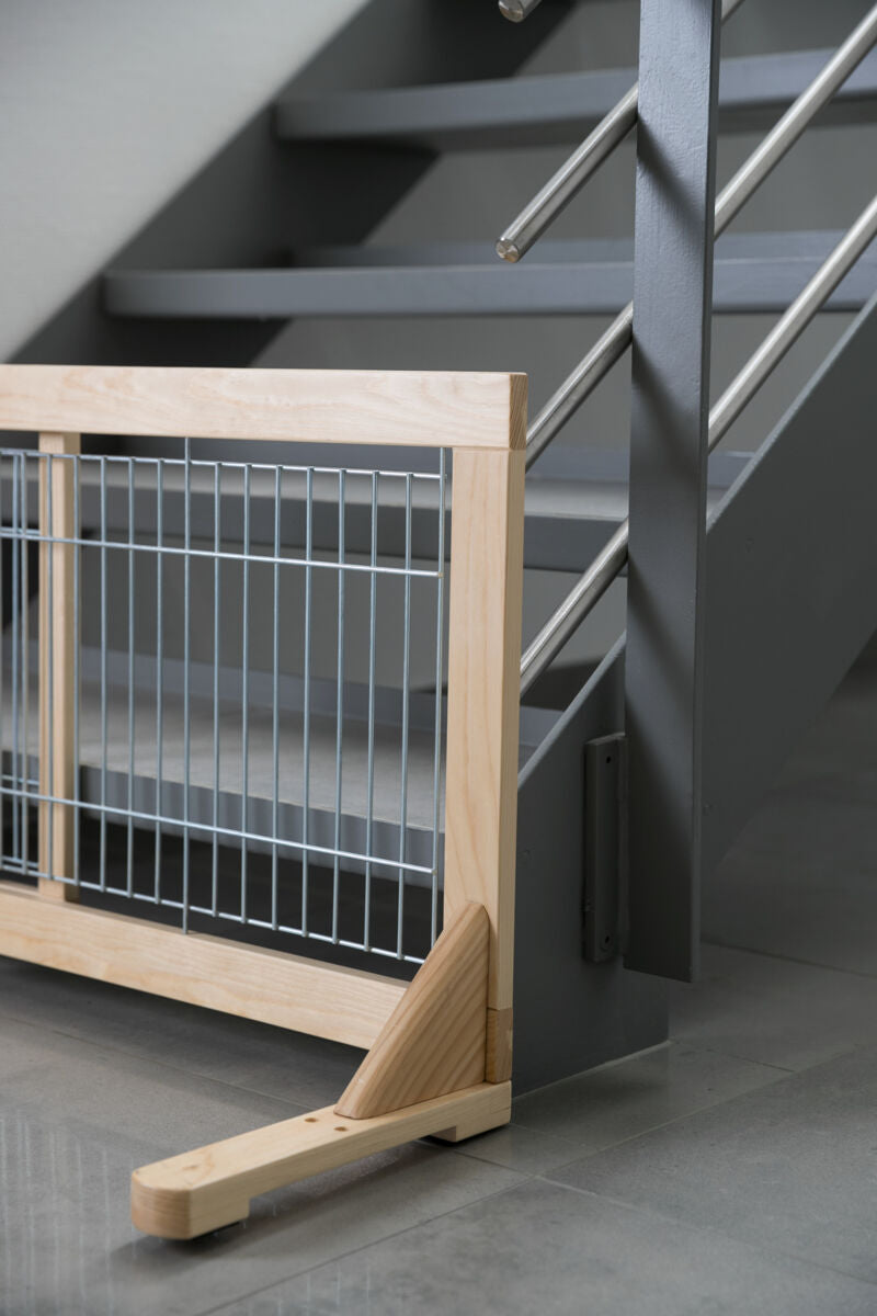 Platziere das Absperrgitter an der gewünschten Stelle, um Bereiche für deinen Hund abzusperren. Überprüfe regelmäßig die Stabilität und den Zustand.