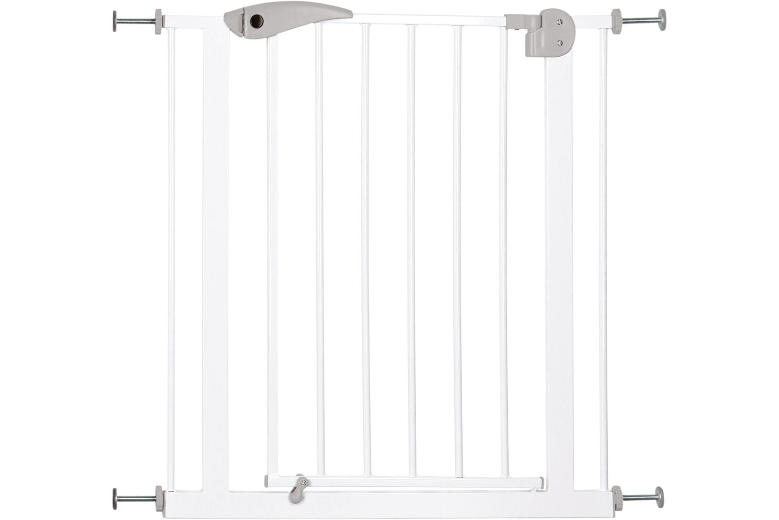 Das Absperrgitter durch Klemmvorrichtung ohne Bohren an der gewünschten Stelle befestigen. Die schwenkbare Tür ermöglicht einfachen Durchgang, der Sicherheitsverschluss sorgt für zuverlässigen Schutz. Bei Bedarf mit Erweiterungselementen vergrössern.