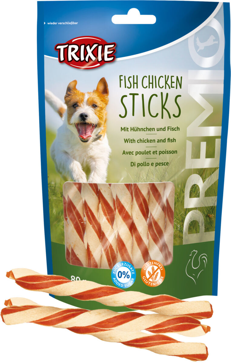 Description Trixie – PREMIO Fish Chicken Sticks, 6×80 g: Proteinreiche Snackstangen mit Fleisch & Fisch