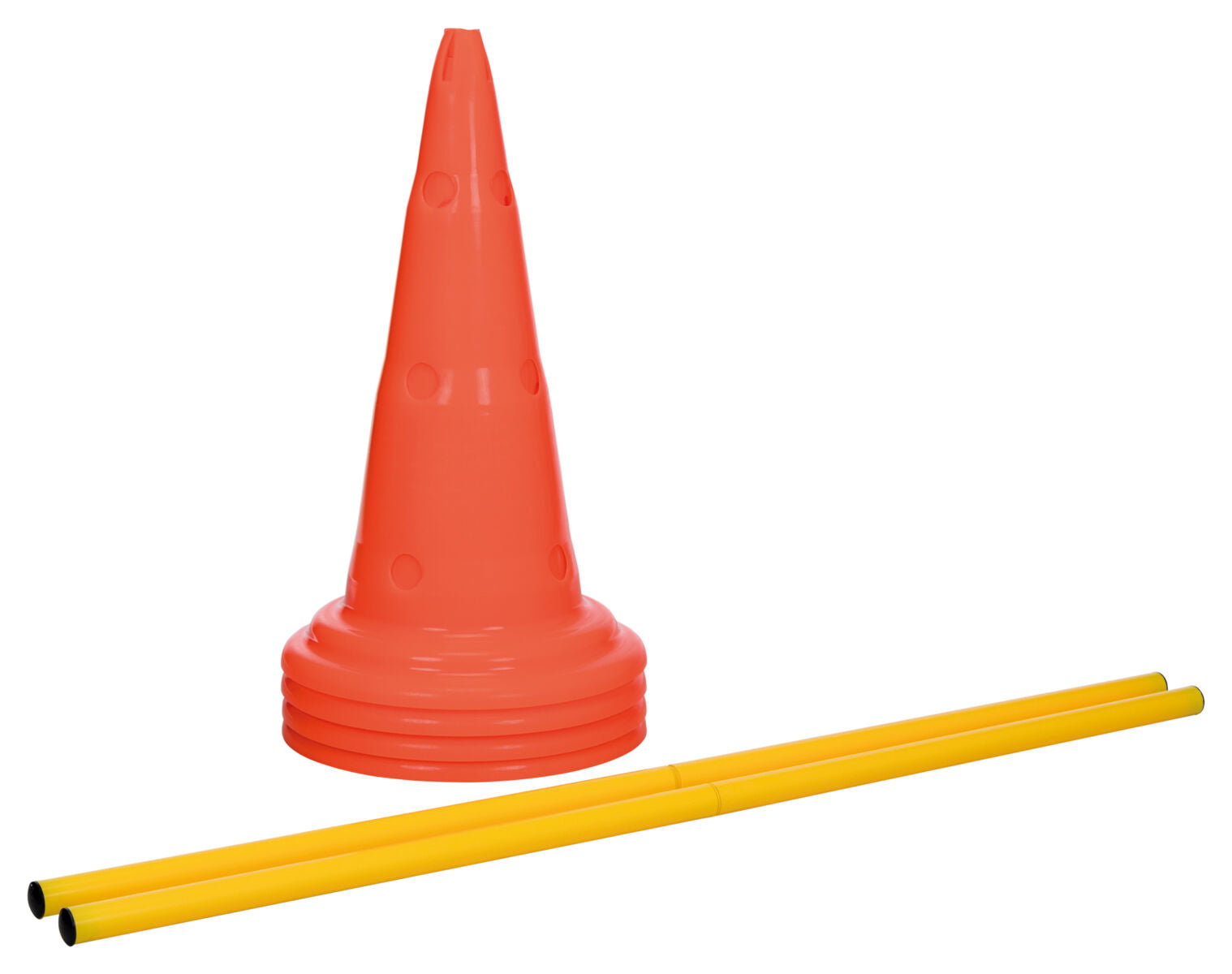 Set aus Hürdenstangen und Kegeln mit Halterungen