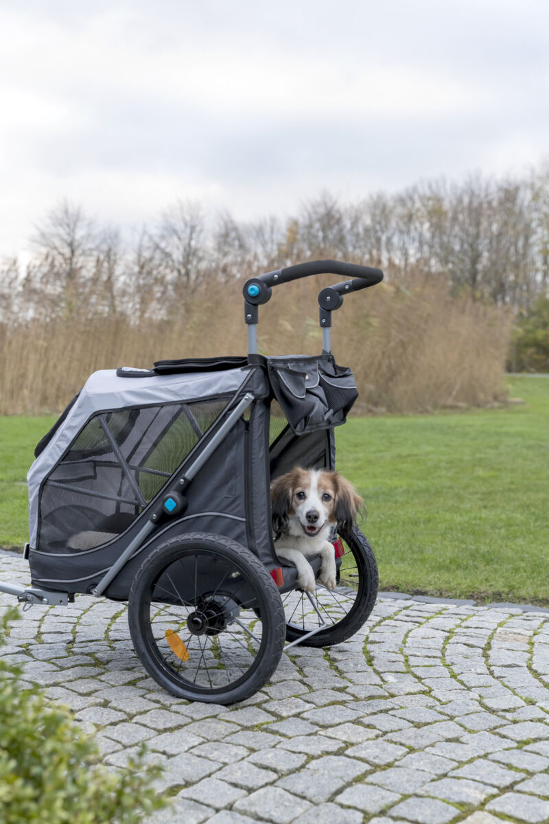 Description Trixie – Fahrrad-Anhänger, faltbar, grau: Flexibler Transport für deinen Hund