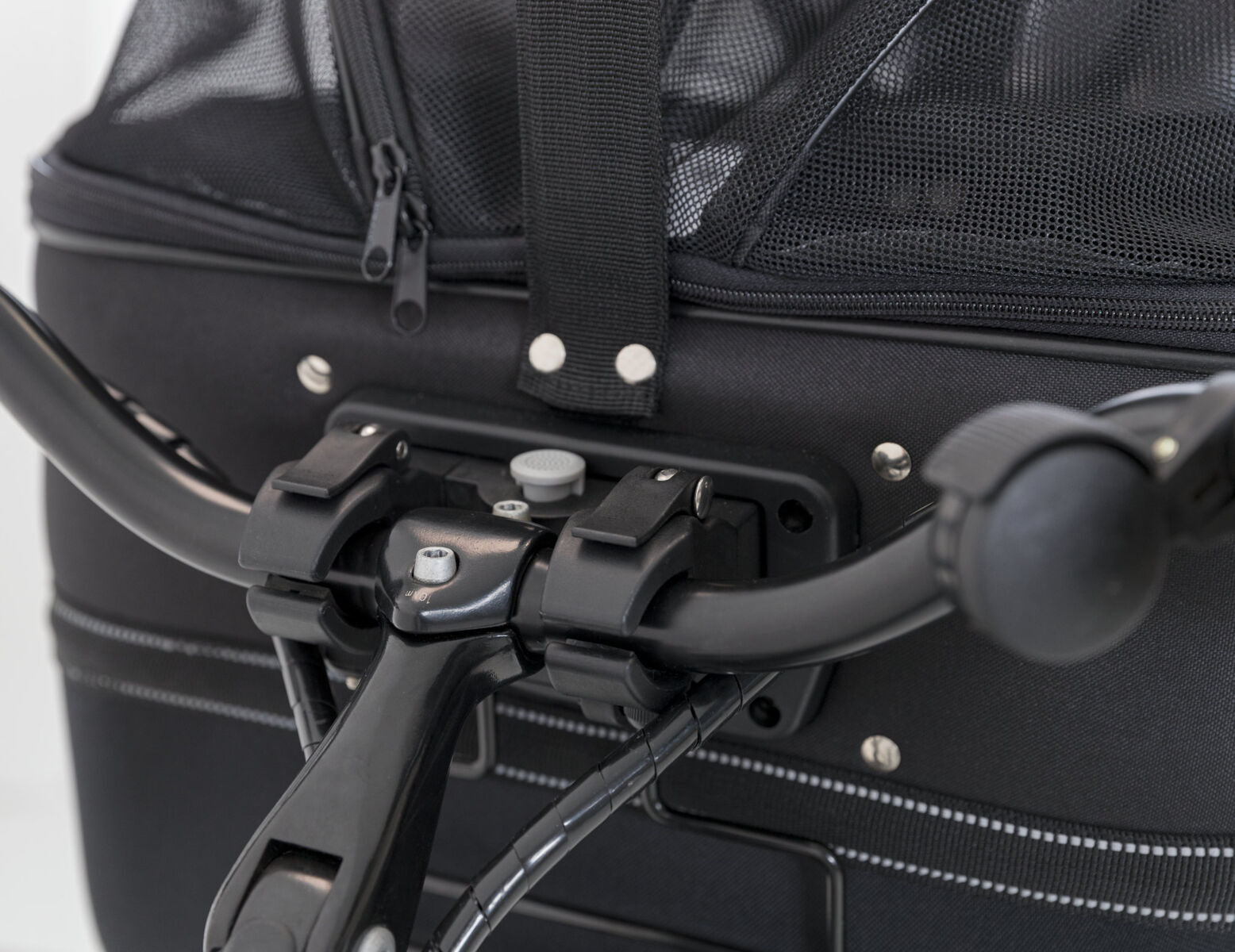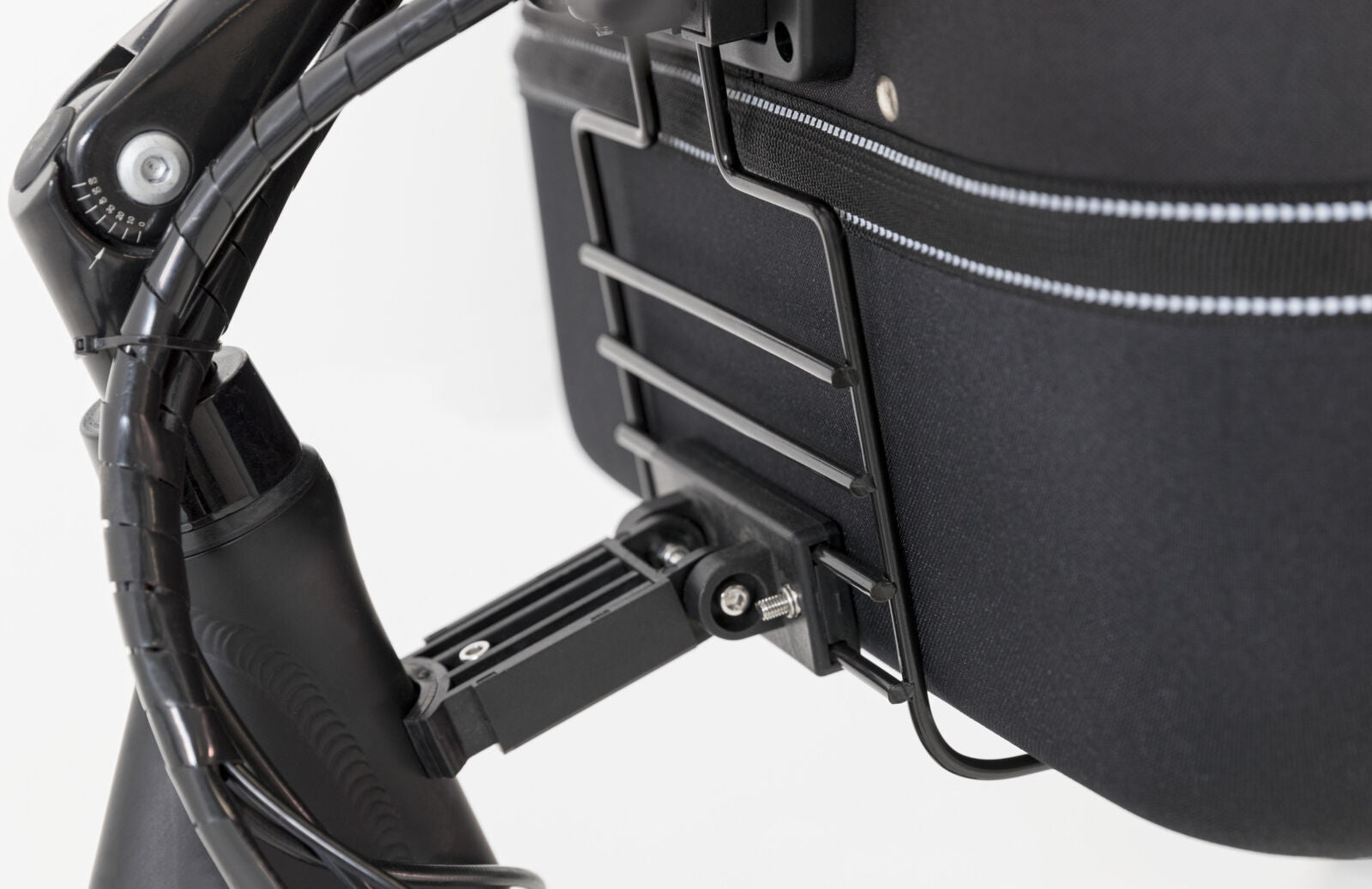 Der Korb wird mithilfe der separat erhältlichen Halterung (Art. 13108) am Fahrradlenker befestigt. Der Hund wird mit der integrierten Leine gesichert. Ideal für kurze Ausflüge und den Alltag in der Stadt.