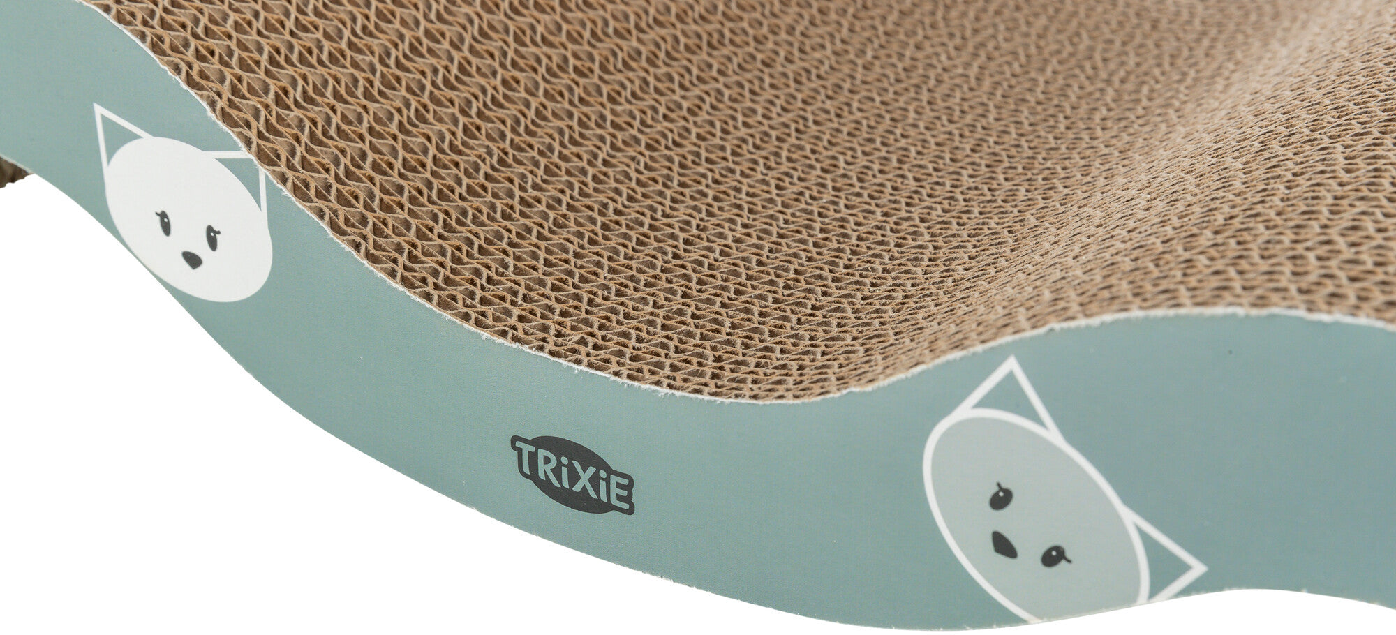 Die Trixie Kratzwelle Mimi in mint ist ein platzsparendes Kratzmöbel aus robuster Pappe. Die geschwungene Form lädt nicht nur zum Krallenwetzen ein, sondern bietet Katzen auch einen gemütlichen Ruheplatz.