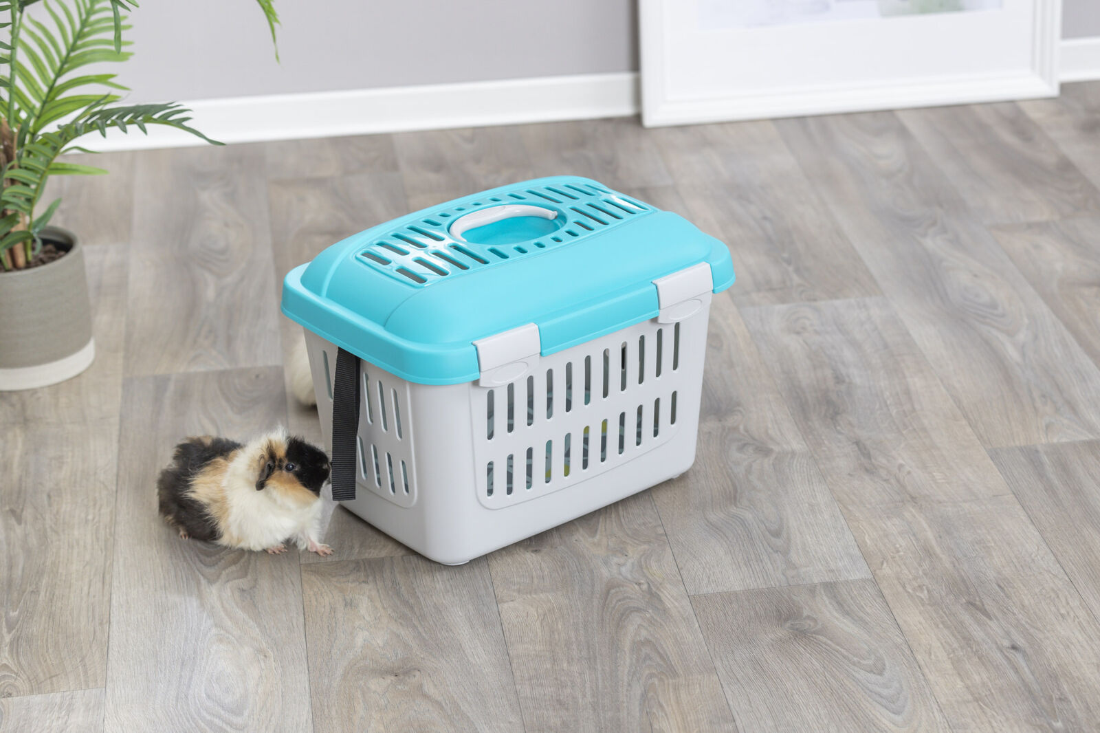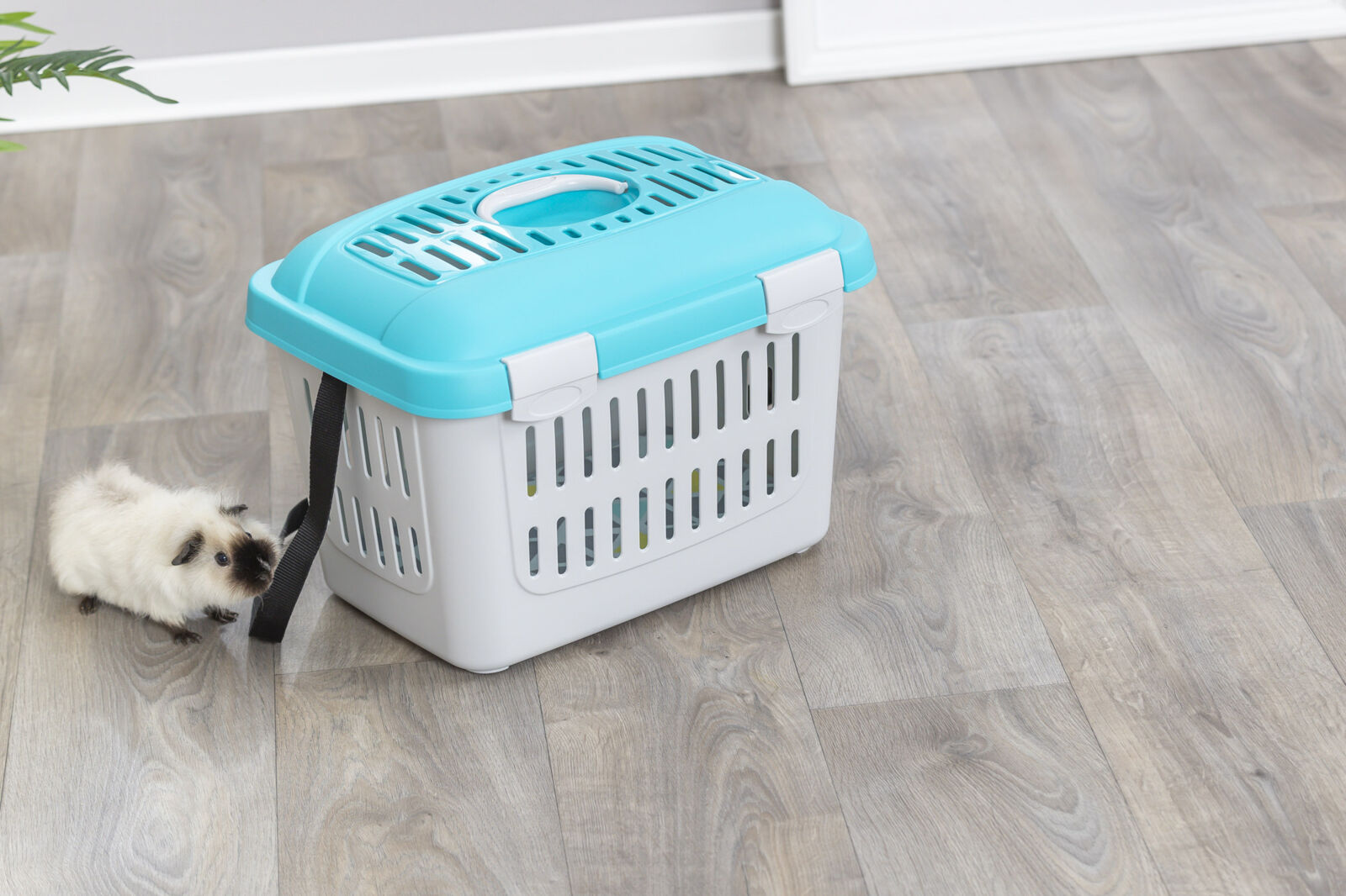 Die Trixie Midi-Capri Transportbox ist ideal für den sicheren und komfortablen Transport von Nagetieren wie Meerschweinchen, Hamstern oder Kaninchen. Die Box lässt sich von oben öffnen und ist mit praktischem Tragegriff sowie Schultergurt ausgestattet, sodass sie bequem getragen werden kann. Hergestellt aus stabilem Kunststoff bietet sie Schutz und Sicherheit für die Tiere während des Transports. Die moderne Farbkombination aus Hellgrau und Türkis macht die Box zudem zu einem stylischen Begleiter.