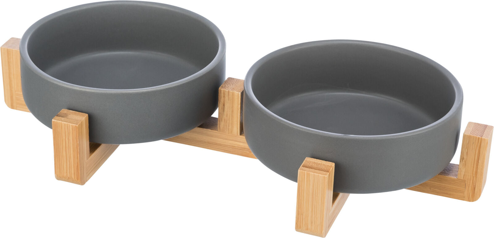 Trixie - Napf-Set, Keramik/Holz, grau/natur
