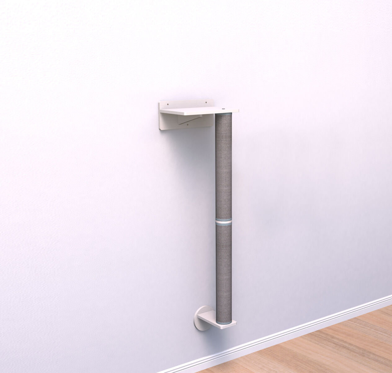 Den Stamm mit den Wandhaltern gemäss Anleitung sicher an der gewünschten Stelle montieren. Er dient als Aufstieg, Kletter- und Kratzmöglichkeit und kann mit weiteren Wand-Elementen kombiniert werden – für ein aktives und glückliches Katzenleben.
