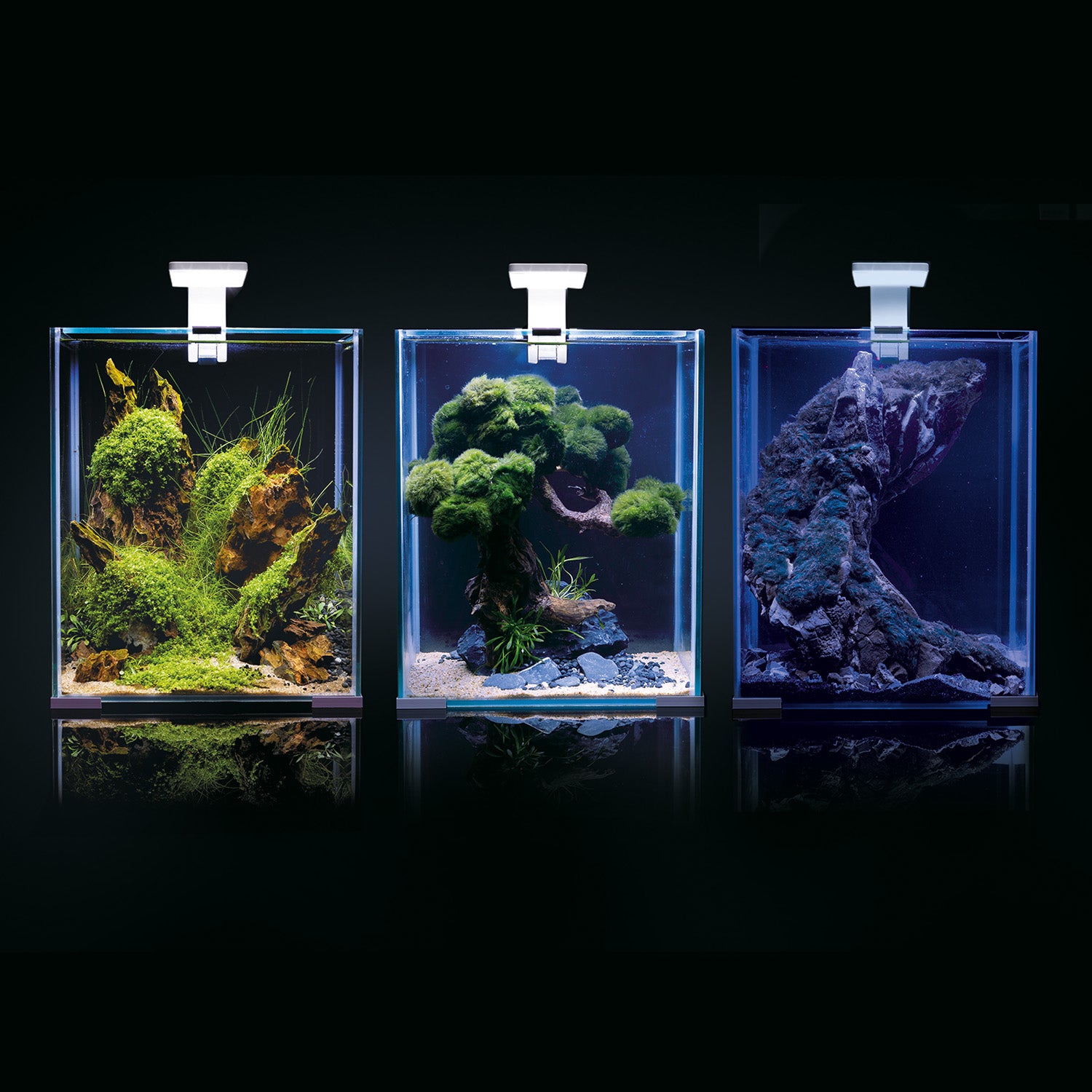 Das Aquael Shrimp Set Day & Night in Schwarz ist ein voll ausgestattetes Nano-Aquarium, das optimale Lebensbedingungen für Pflanzen, Garnelen und kleine Fische schafft. Die neu integrierte Day & Night LED-Beleuchtung bietet drei Modi: zwei verschiedene Tageslichtstufen und ein beruhigendes blaues Nachtlicht. So kannst du dein Aquarium individuell beleuchten – Tag und Nacht. Ausgestattet mit einem leistungsstarken Turbo Mini Filter und einer automatischen Fix 2 Heizung sorgt das Set für eine stabile Wasserqualität und Temperatur. Das moderne Design mit Glasdeckel und minimalistischen Ecken macht das Aquarium zu einem eleganten Highlight in jedem Raum.