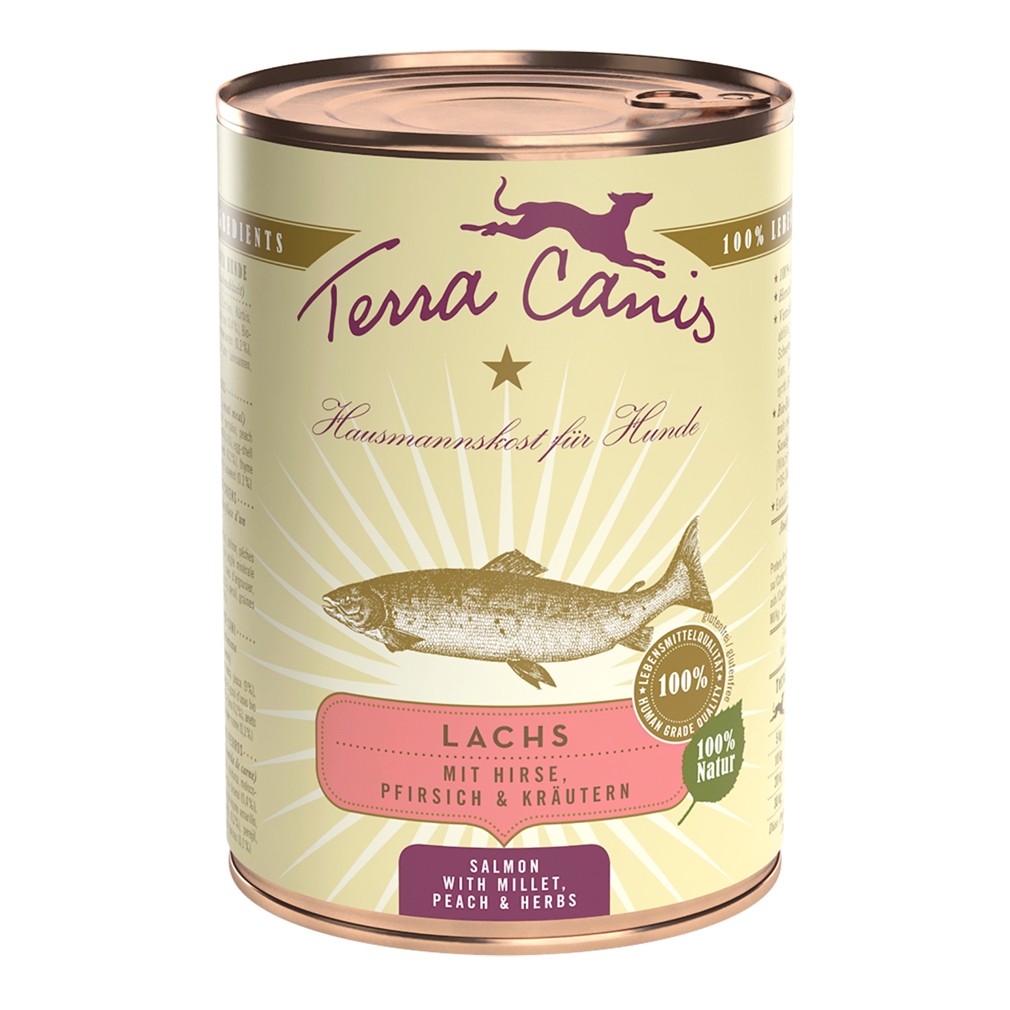 Terra Canis - Classic Lachs mit Hirse, Pfirsich & Kräutern Terra Canis CLASSIC-Menüs bestehen aus hohem Muskelfleischanteil (inkl. Herz und...