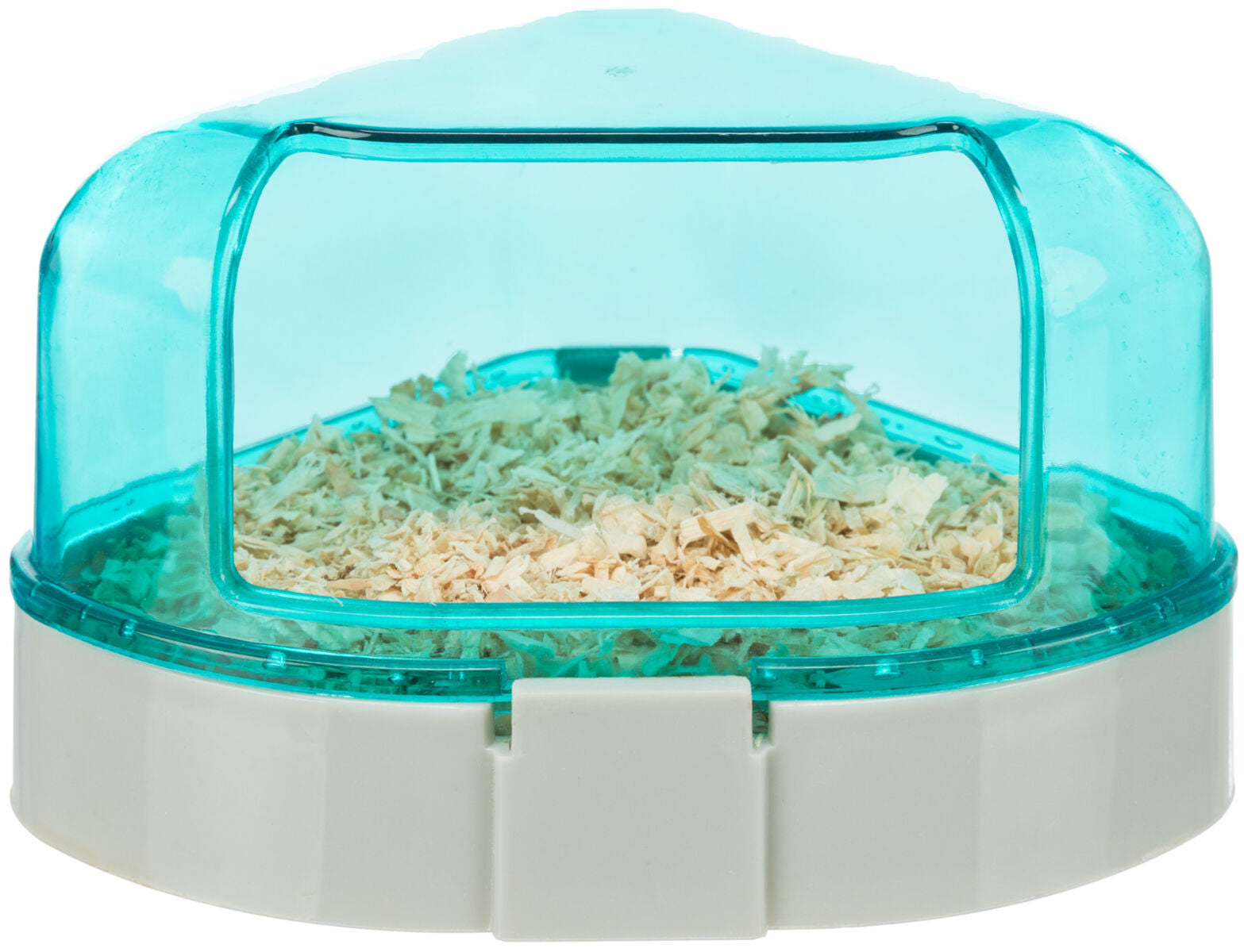 Die Toilette wird in eine Ecke des Hamsterkäfigs gestellt und bei Bedarf gereinigt. Das Dach kann abgenommen werden, um die Reinigung zu erleichtern und den Hamsterkomfort zu erhöhen.