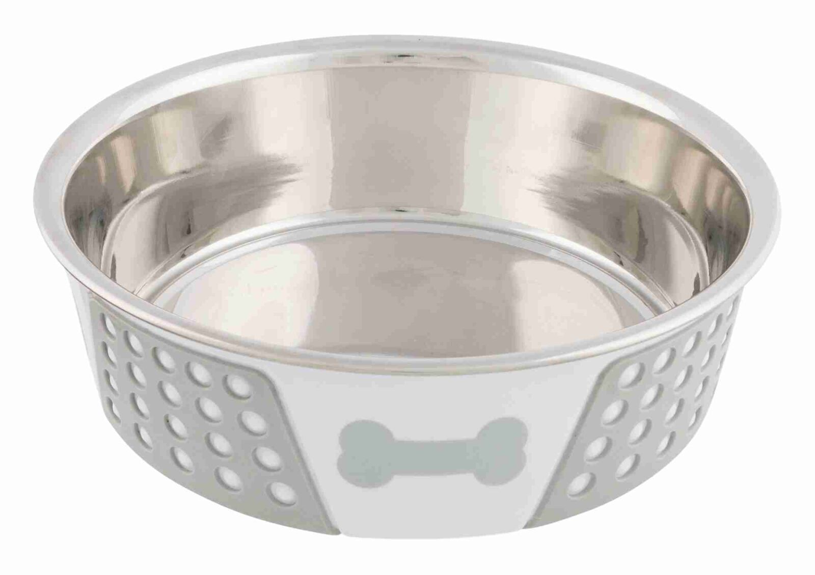 Trixie - Edelstahlnapf mit Silikon, weiss/grau