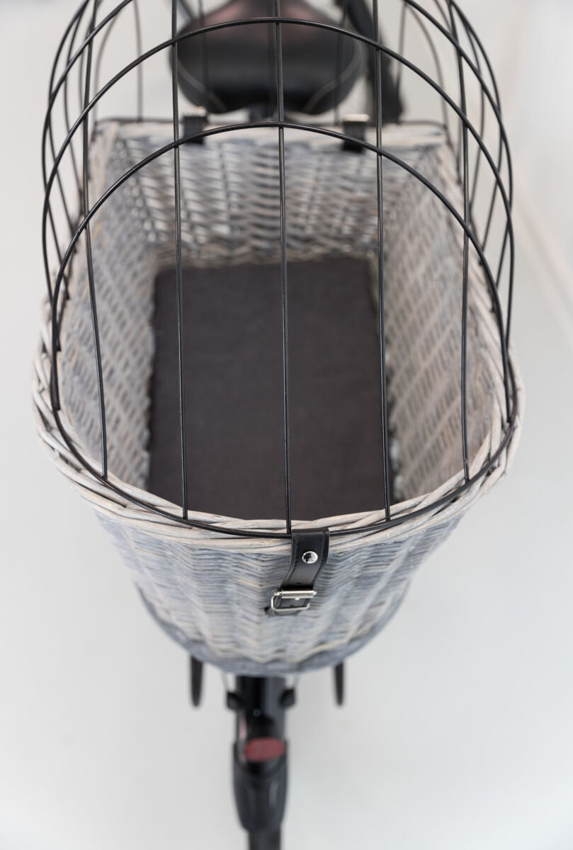 Der Korb wird mit dem mitgelieferten Befestigungssystem sicher auf dem Gepäckträger montiert. Das Gitter lässt sich einfach aufsetzen oder abnehmen. Der Innenraum ist weich gepolstert und bietet deinem Tier eine angenehme Fahrt.