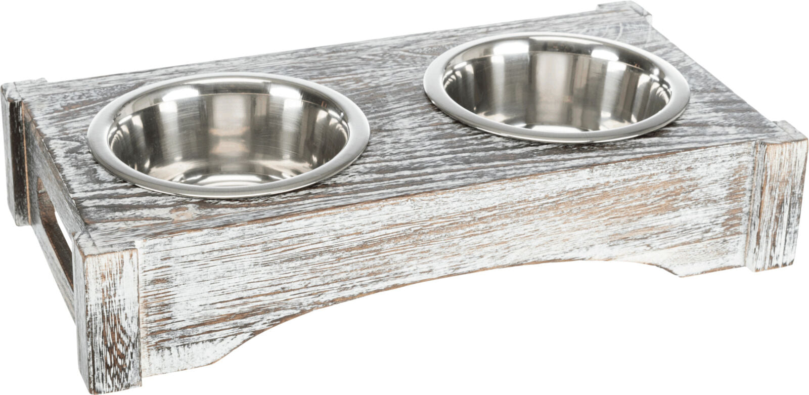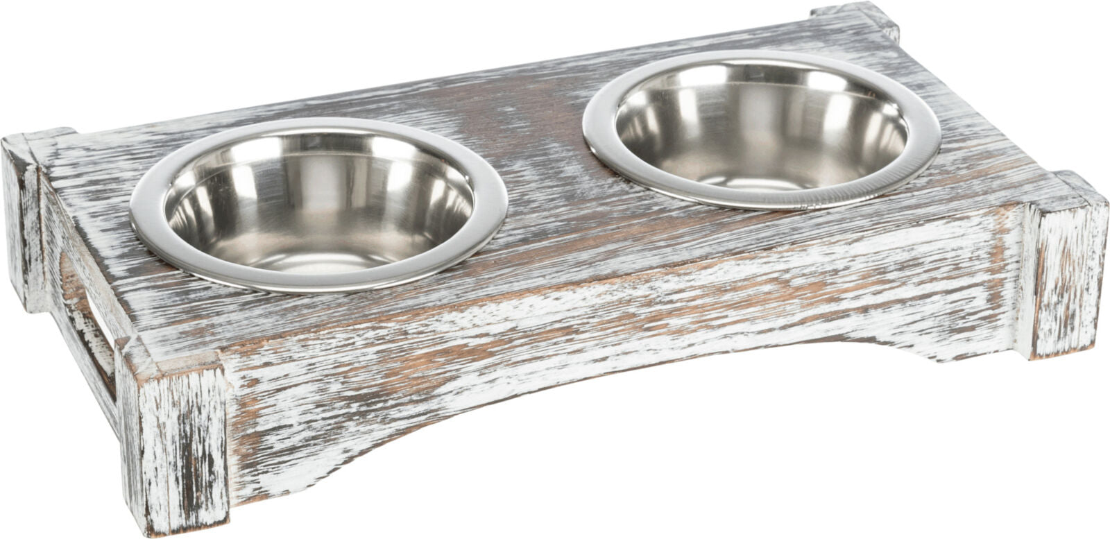 Trixie - Napf-Set, Edelstahl/Holz, weiss
