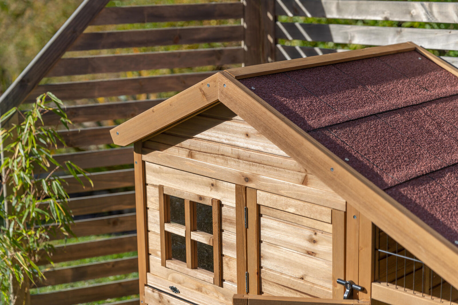 Der Trixie Natura Kaninchenstall mit Freigehege in Grösse XL bietet deinen Tieren viel Platz zum Wohnen, Spielen und Ausruhen. Mit integriertem Freilaufgehege, geschütztem Rückzugsbereich und cleverem Stauraum im Dach vereint dieser Stall Komfort, Sicherheit und Funktionalität. Fenster mit Kunststoffscheibe sorgen für Licht im Innenbereich, während die stabile Holz-Metall-Konstruktion für Langlebigkeit sorgt. Ein praktisches Zuhause für Kaninchen und andere Kleinnager, das sich durch durchdachte Details leicht reinigen und erweitern lässt.