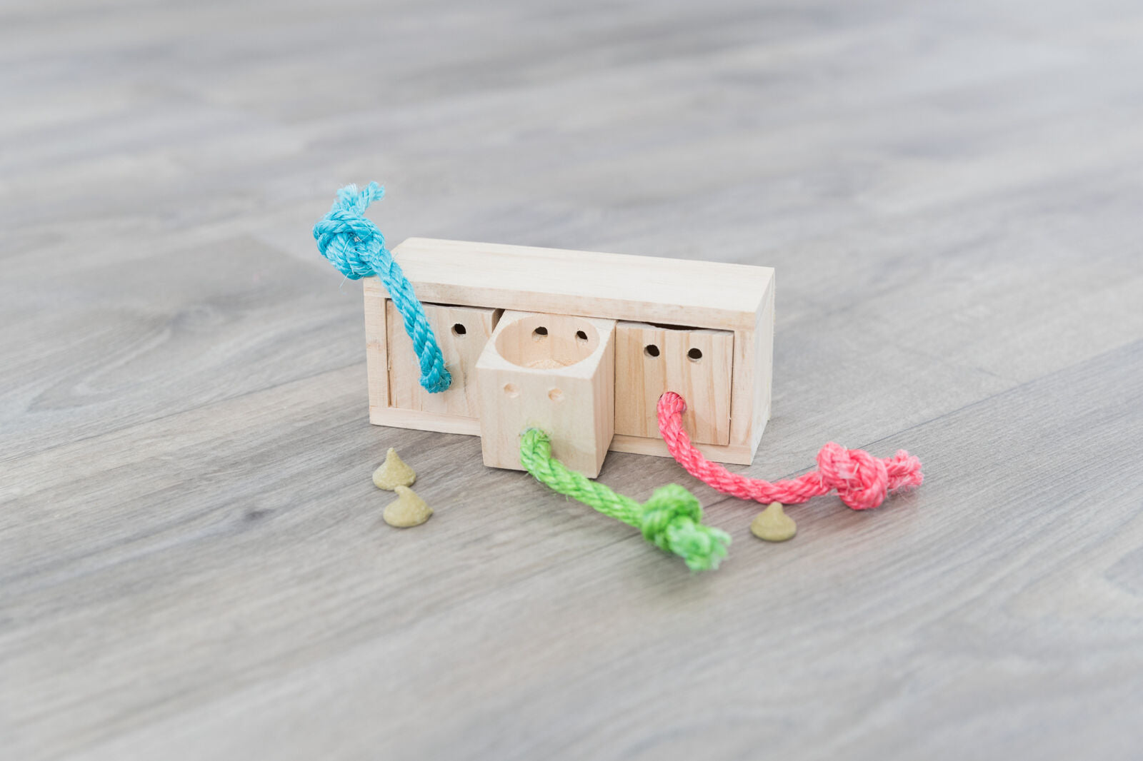 Snacks in den Cube geben und das Tier spielerisch nach Futter suchen lassen.