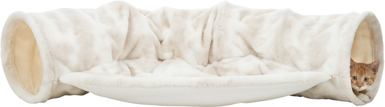 Trixie - Spieltunnel Nelli mit Liegefläche, Plüsch, weiss- Taupe