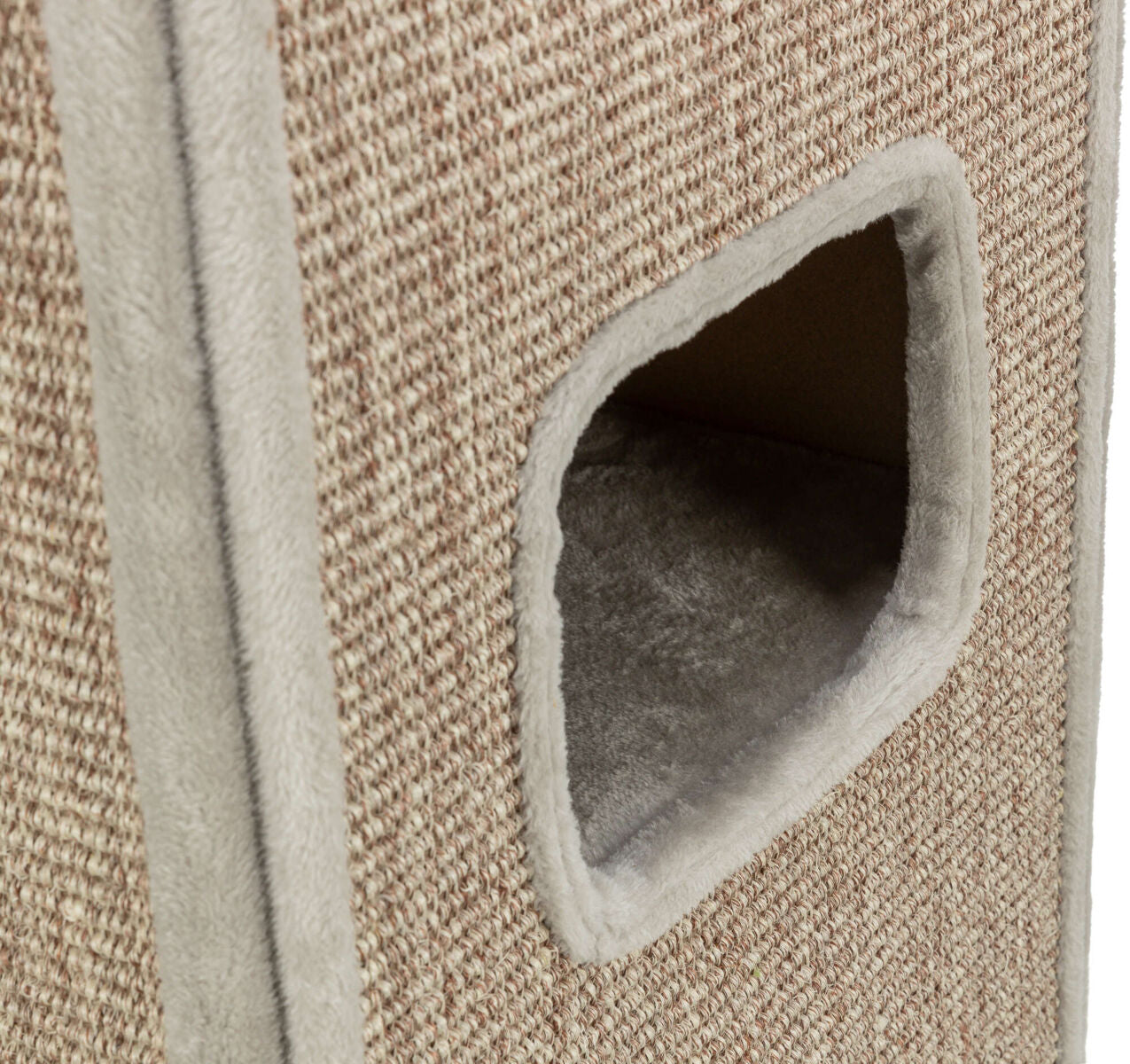 Beschreibung Trixie - Cat Tower Juno, grau – vielseitige Kratztonne mit Sisalkratzflächen und kuscheligem Wendekissen