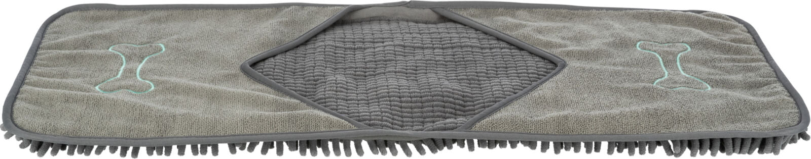 Beschreibung Trixie Handtuch mit Handlaschen – Schnelltrocknende Mikrofaser in Grau