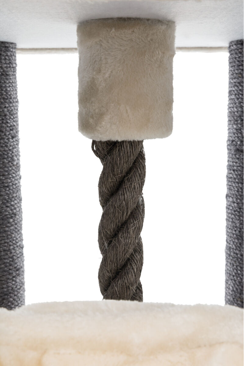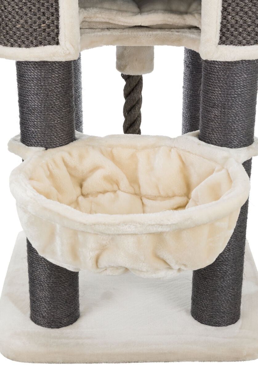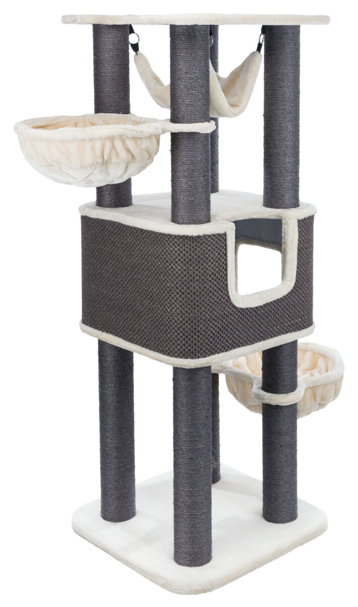 Der Trixie Kratzbaum XXL Humberto in Creme/Grau bietet auf 174 cm Höhe besonders grossen Katzen viel Platz zum Klettern, Krallenwetzen und Entspannen. Die stabilen 6 mm Sisalstämme fördern das natürliche Kratzverhalten. Die Höhle mit Plüsch/Fleece und Wendekissen, zwei gepolsterte Kuschelsäcke sowie die abnehmbare, gepolsterte Hängematte schaffen gemütliche Rückzugsorte. Die dicke, schwere Bodenplatte sorgt für optimale Stabilität und Sicherheit.