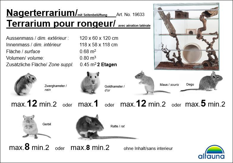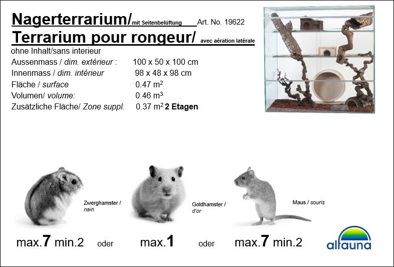 Nagerterrarium mit Seitenbelüftung & zwei Etagen – Artgerechter Lebensraum mit viel Bewegungsfreiheit Dieses hochwertige Nagerterrarium mit Seitenbelüftung und zwei Etagen...