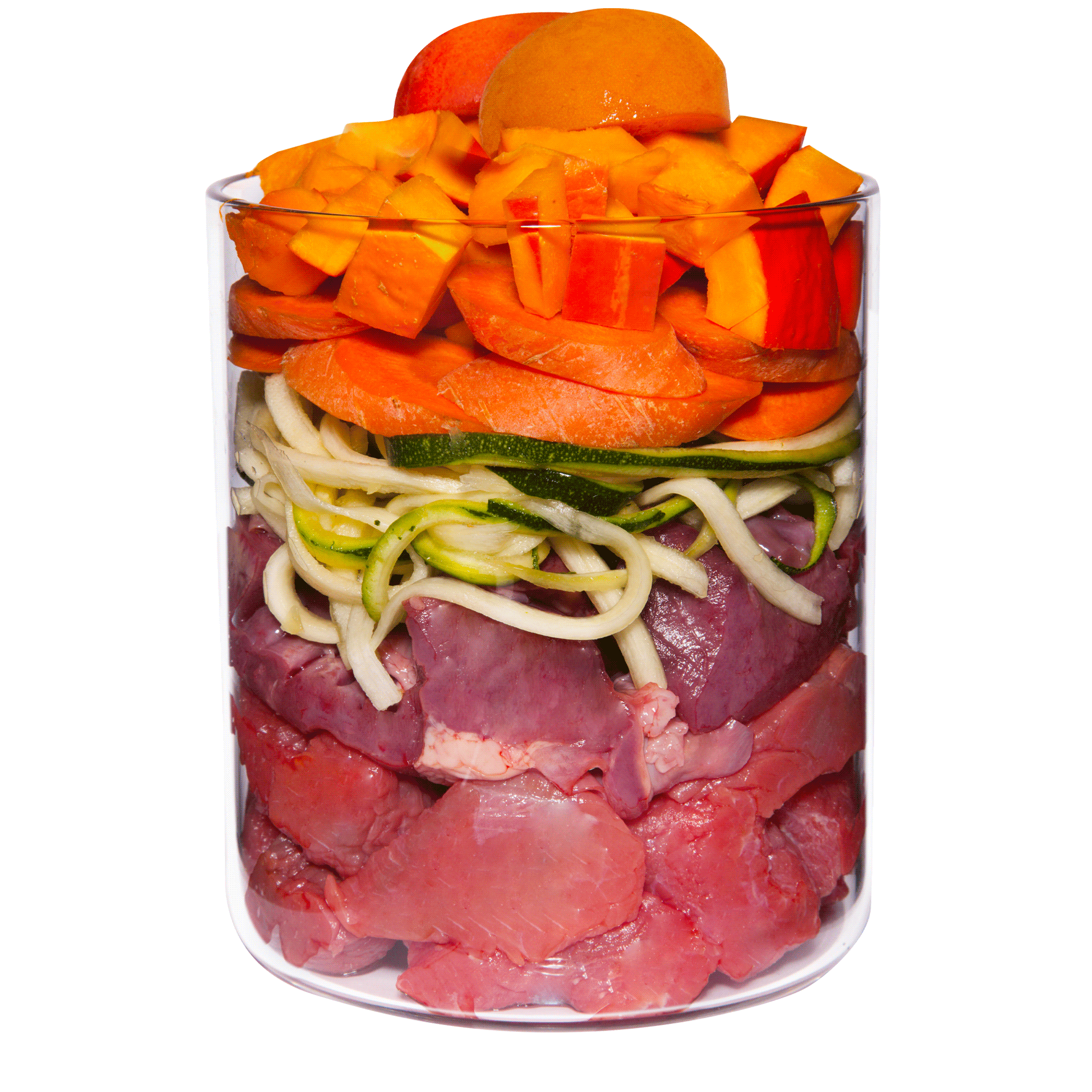 Kaninchenfleisch (56 %), Zucchini, Aprikose, Kokosmehl, Rapsöl, Borretsch, Mineralerde, Bierhefe, Austernschale, Kräuter, Mineralstoffe.