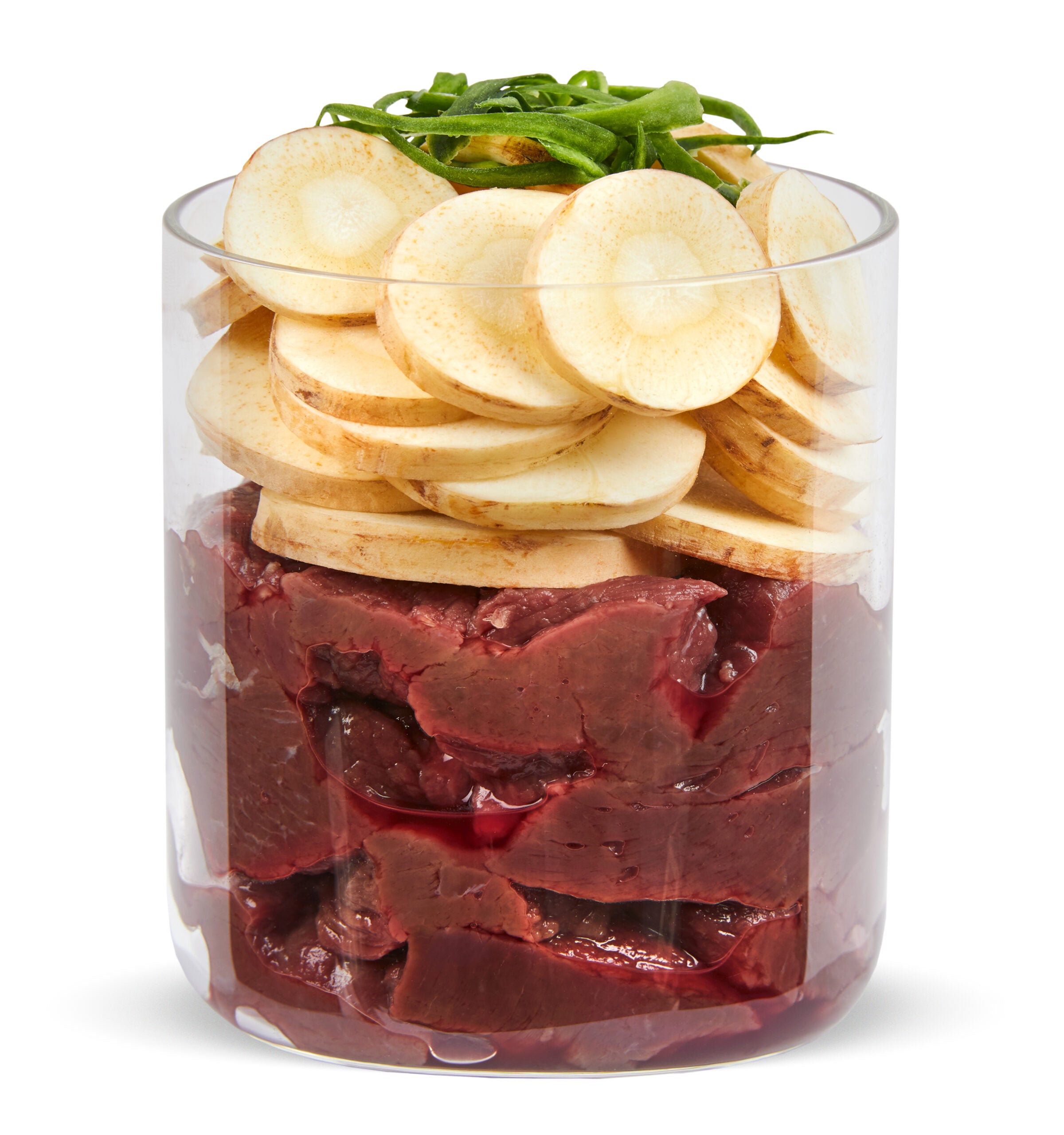 Muskelfleisch vom Strauss (60 %), Pastinake (36 %), Rapsöl, Seealge, Mineralstoffe.