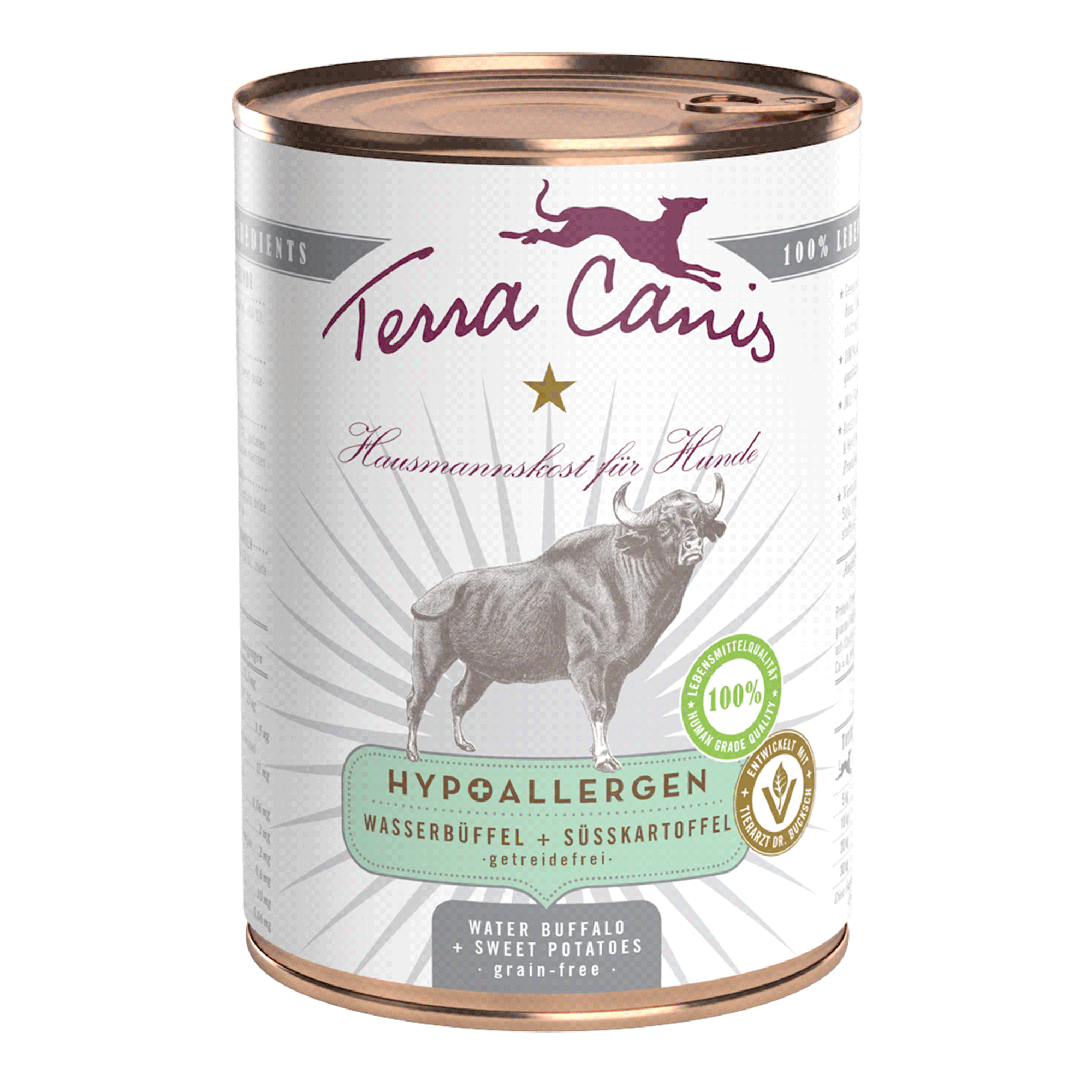 Terra Canis Hypoallergen Wasserbüffel mit Süsskartoffel – Allergikerfreundliches Nassfutter für sensible Hunde Dieses hochwertige Hypoallergen-Menü enthält 60 % reines Muskelfleisch...
