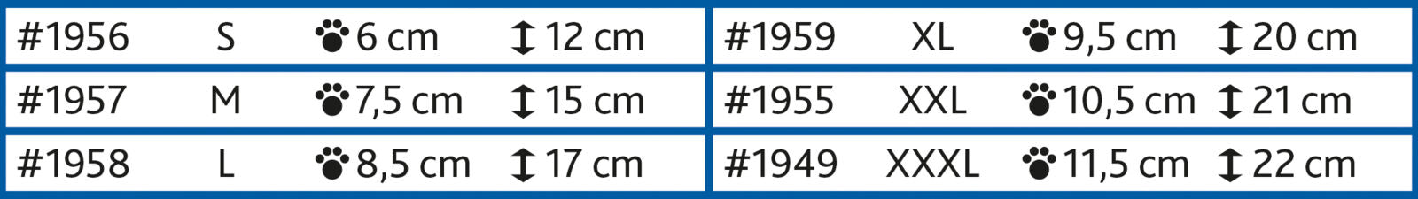 Die Schutzstiefel werden über die Pfote gezogen und mit dem Klettverschluss fixiert. Sie schützen Wunden, Verbände oder empfindliche Ballen zuverlässig vor Schmutz, Nässe und mechanischer Belastung – sowohl im Innen- als auch Aussenbereich.