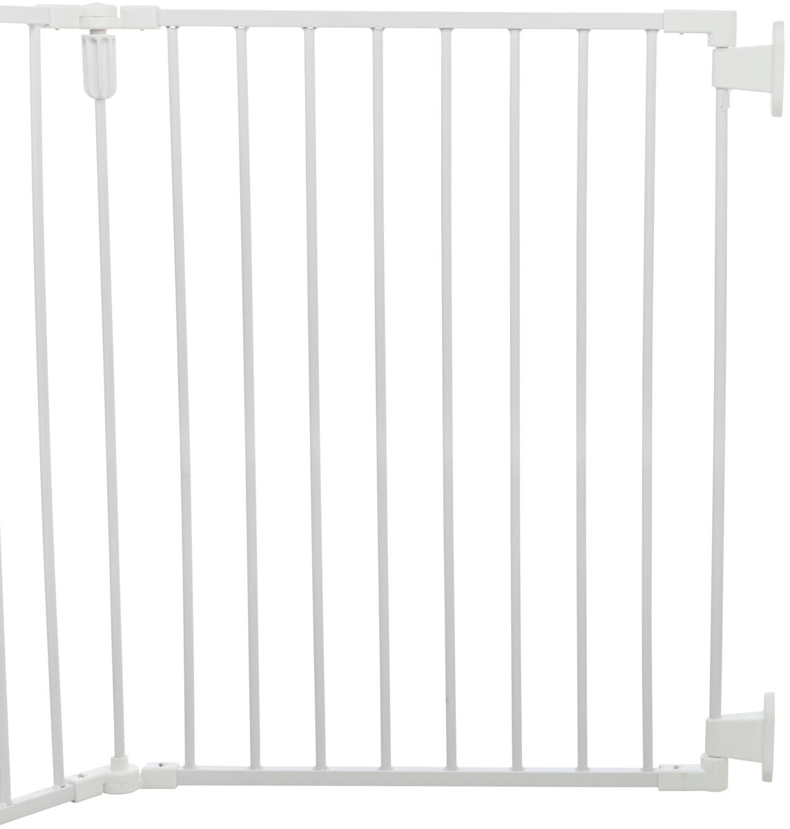Das Gitter wird zur Wandmontage fest verschraubt und kann flexibel in verschiedenen Winkeln angebracht werden. Die integrierte Tür erleichtert das Durchgehen, während dein Hund zuverlässig in einem definierten Bereich bleibt – ideal zur Raumtrennung oder als Schutz vor Treppen und Gefahrenzonen.