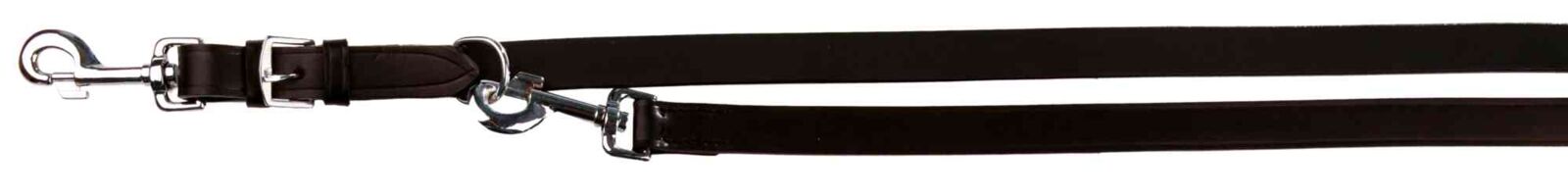 Die Leine wird mithilfe der Karabinerhaken an Halsband oder Geschirr befestigt. Dank der Verstellmöglichkeit lässt sich die Länge an die jeweilige Umgebung anpassen – ideal für Alltag, Training oder sportliche Aktivitäten.