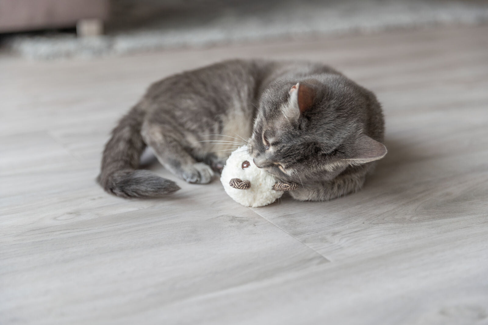 Der Plüschbär wird der Katze als Spielzeug angeboten. Die enthaltene Katzenminze regt zum Spielen, Kauen und Kuscheln an und unterstützt so die Beschäftigung und Entspannung.