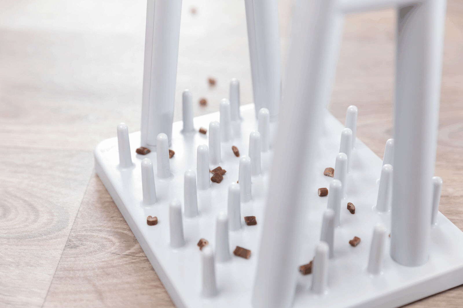 Verstecke Leckerlis in den drehbaren Fächern und animiere deine Katze zum Spielen und Suchen. Unterstütze sie anfangs bei der Bedienung, bis sie die Mechanismen versteht. Regelmäßige Nutzung fördert geistige Fähigkeiten und beugt Langeweile vor.