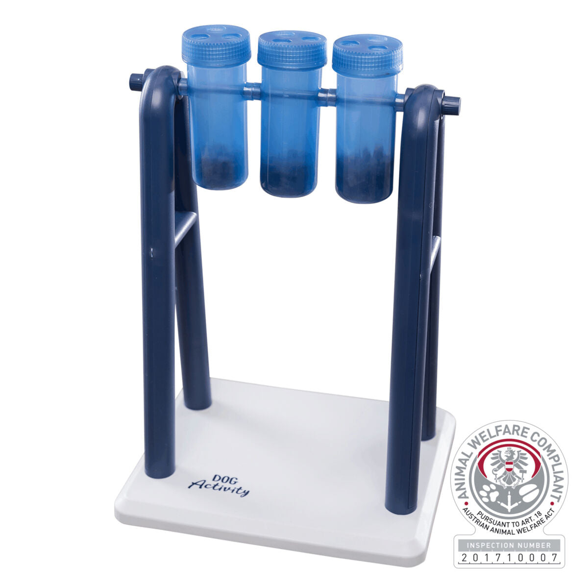 Der Trixie Dog Activity Turn Around fordert Ihren Hund mit drei Drehelementen, die jeweils zwei unterschiedliche Deckelöffnungen besitzen. Dadurch lassen sich zwei Schwierigkeitsstufen einstellen, die die geistige Herausforderung erhöhen und für Abwechslung sorgen. Die Drehmechanismen sind spülmaschinengeeignet und somit besonders pflegeleicht. Der stabile Ständer steht dank rutschfester Gummifüsse sicher auf jedem Untergrund. Gefertigt aus robustem Kunststoff, begleitet das Spiel Ihren Hund zuverlässig beim Training von Geschicklichkeit und Konzentration. Eine ausführliche Trainingsanleitung liegt bei. Geprüft durch eine unabhängige Fachstelle für tiergerechte Tierhaltung und Tierschutz.