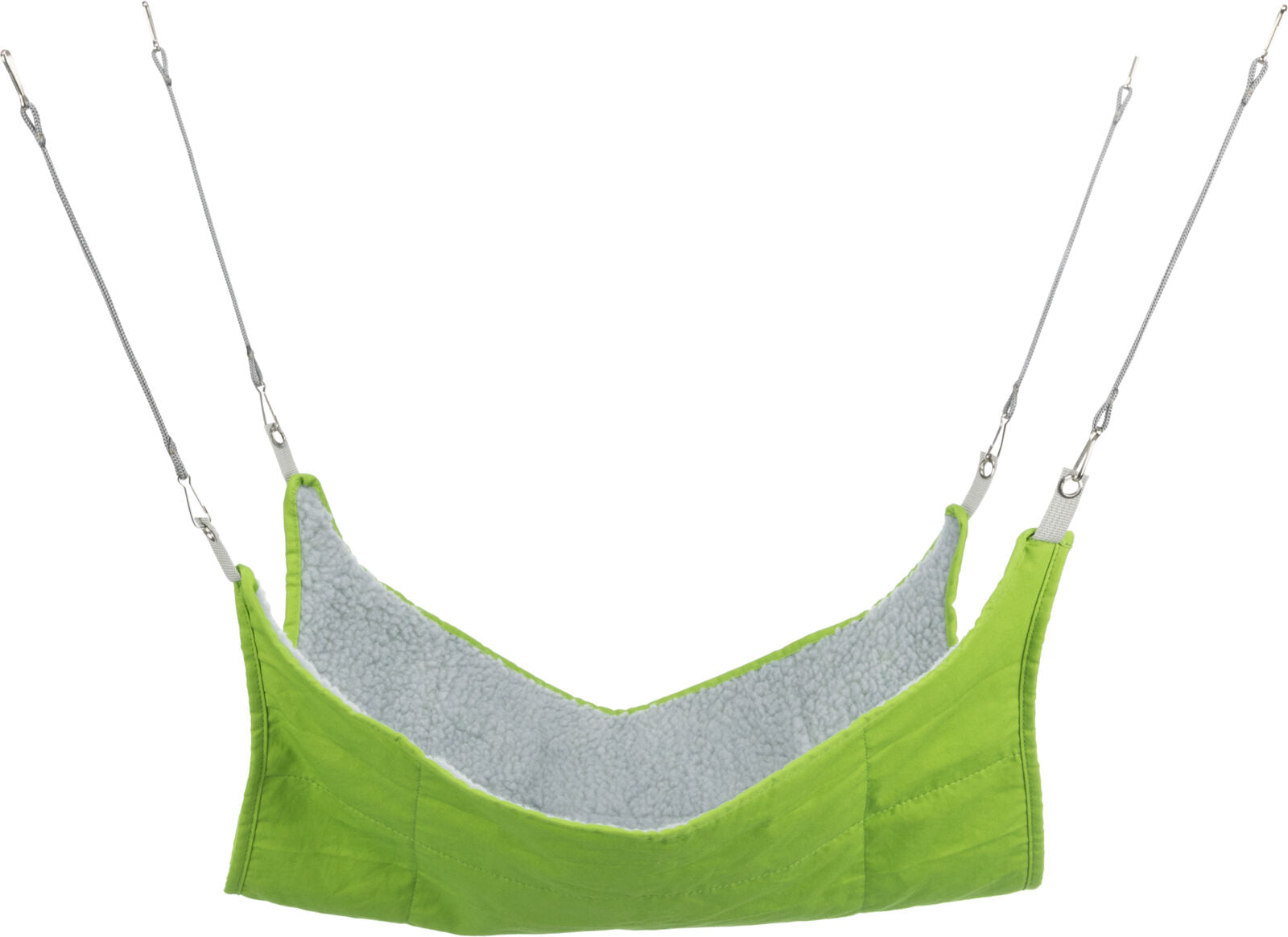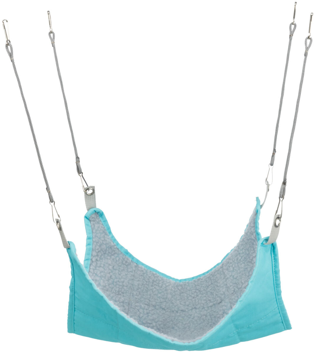 Die Hängematte lässt sich mit den vier verstellbaren Bändern und Metallkarabinern sicher an den Gitterstäben des Käfigs oder Freilaufgeheges befestigen. Achte darauf, dass sie waagrecht hängt und ausreichend Spielraum bietet, damit dein Kleintier bequem ein– und aussteigen kann. Vor der ersten Nutzung solltest du das Produkt gemäß Pflegehinweis reinigen und die Befestigung regelmäßig auf festen Sitz prüfen.