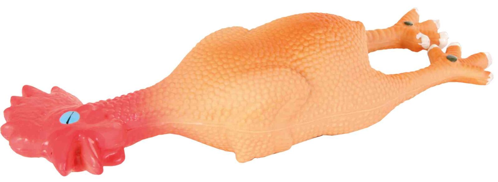 Gib das Latex-Huhn deinem Hund als Spielzeug. Prüfe regelmäßig auf Abnutzung und ersetze bei Bedarf.
