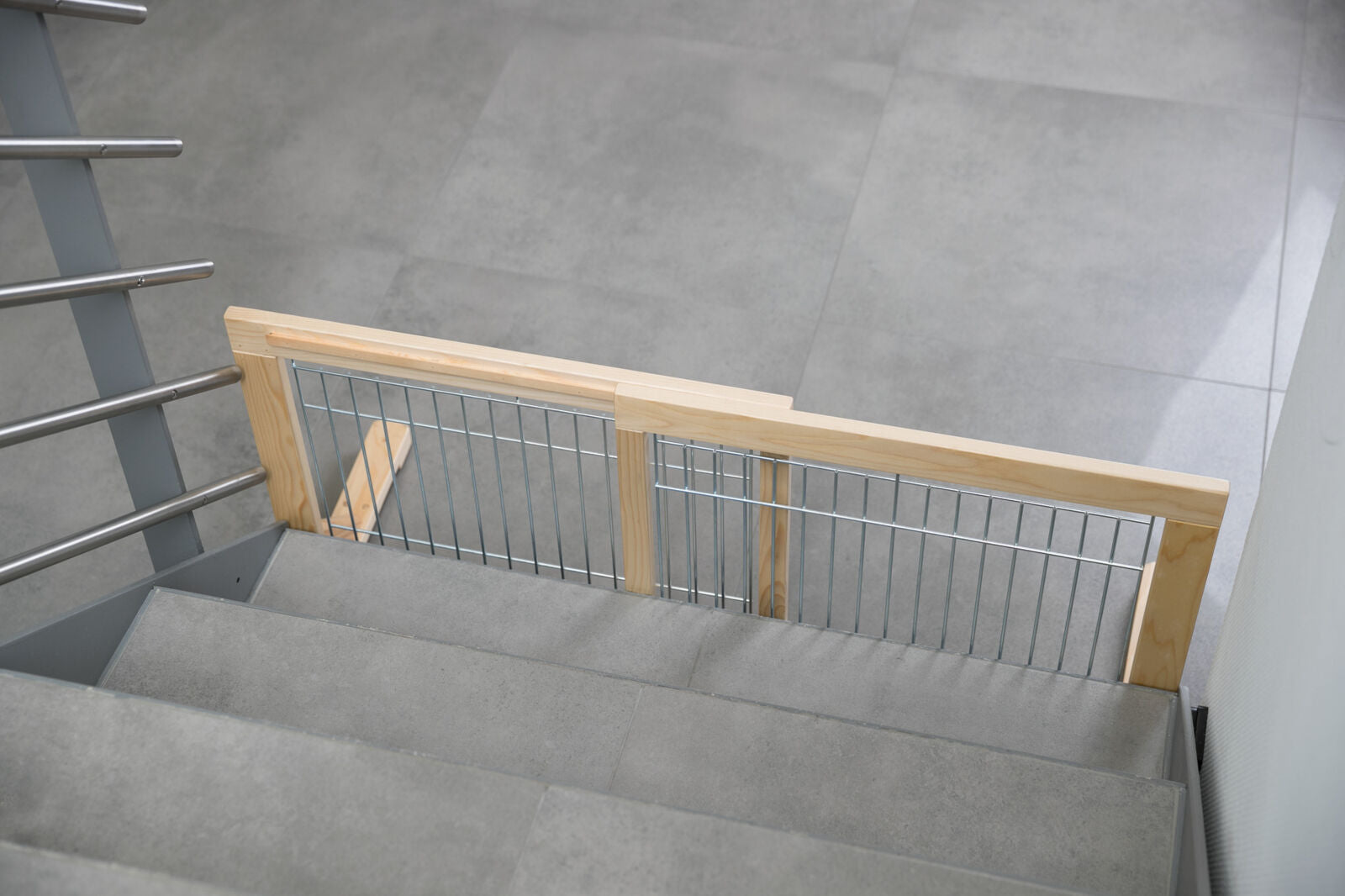 Platziere das Absperrgitter an der gewünschten Stelle, um Bereiche für deinen Hund abzusperren. Überprüfe regelmäßig die Stabilität und den Zustand.