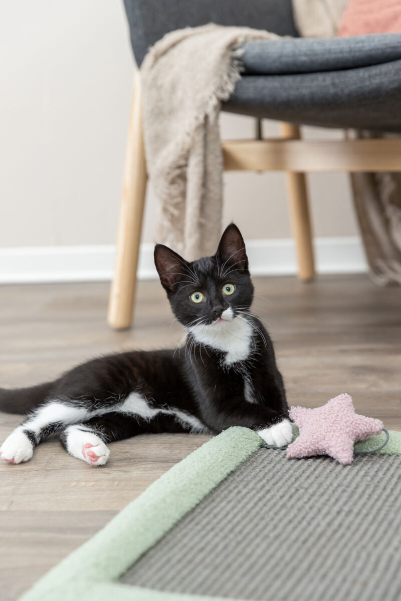 Die Junior Kratzmatte von Trixie ist die perfekte Ergänzung für das Zuhause von Kitten. Sie bietet mit robustem Sisal und weichem Teddyplüsch eine angenehme Kombination aus Kratzfläche und gemütlichem Liegeplatz. Ideal, um die Krallen zu pflegen und gleichzeitig entspannt zu ruhen.