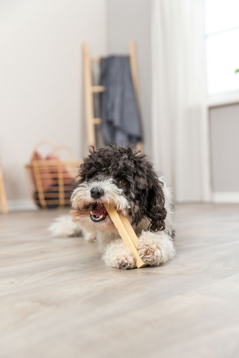 Stange unter Aufsicht reichen. Für längeren Kauspaß in ein Kauspielzeug einklemmen oder direkt als Kauartikel überreichen. Nach starker Abnutzung entfernen.
