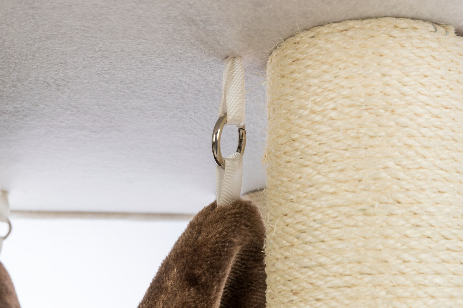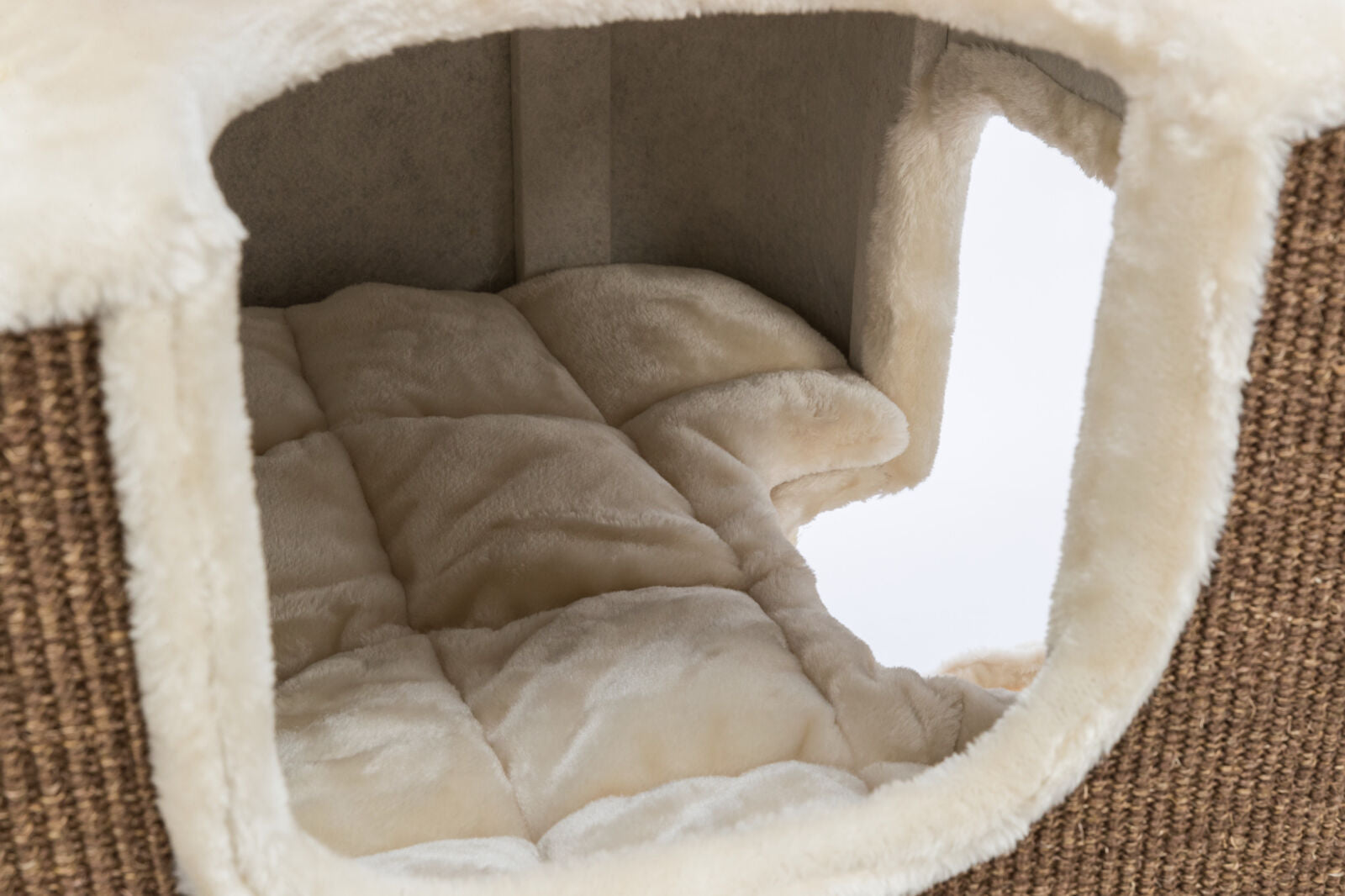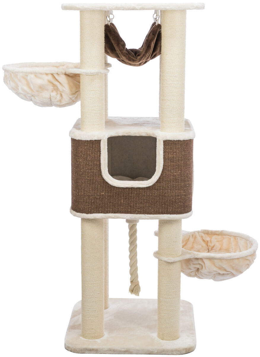 Der Trixie Kratzbaum XXL Humberto in Creme/Dunkelbraun bietet auf 174 cm Höhe besonders grossen Katzen viel Platz zum Klettern, Krallenwetzen und Entspannen. Die stabilen 6 mm Sisalstämme fördern das natürliche Kratzverhalten. Die Höhle mit Plüsch/Fleece und Wendekissen, zwei gepolsterte Kuschelsäcke sowie die abnehmbare, gepolsterte Hängematte schaffen gemütliche Rückzugsorte. Die dicke, schwere Bodenplatte sorgt für optimale Stabilität und Sicherheit.
