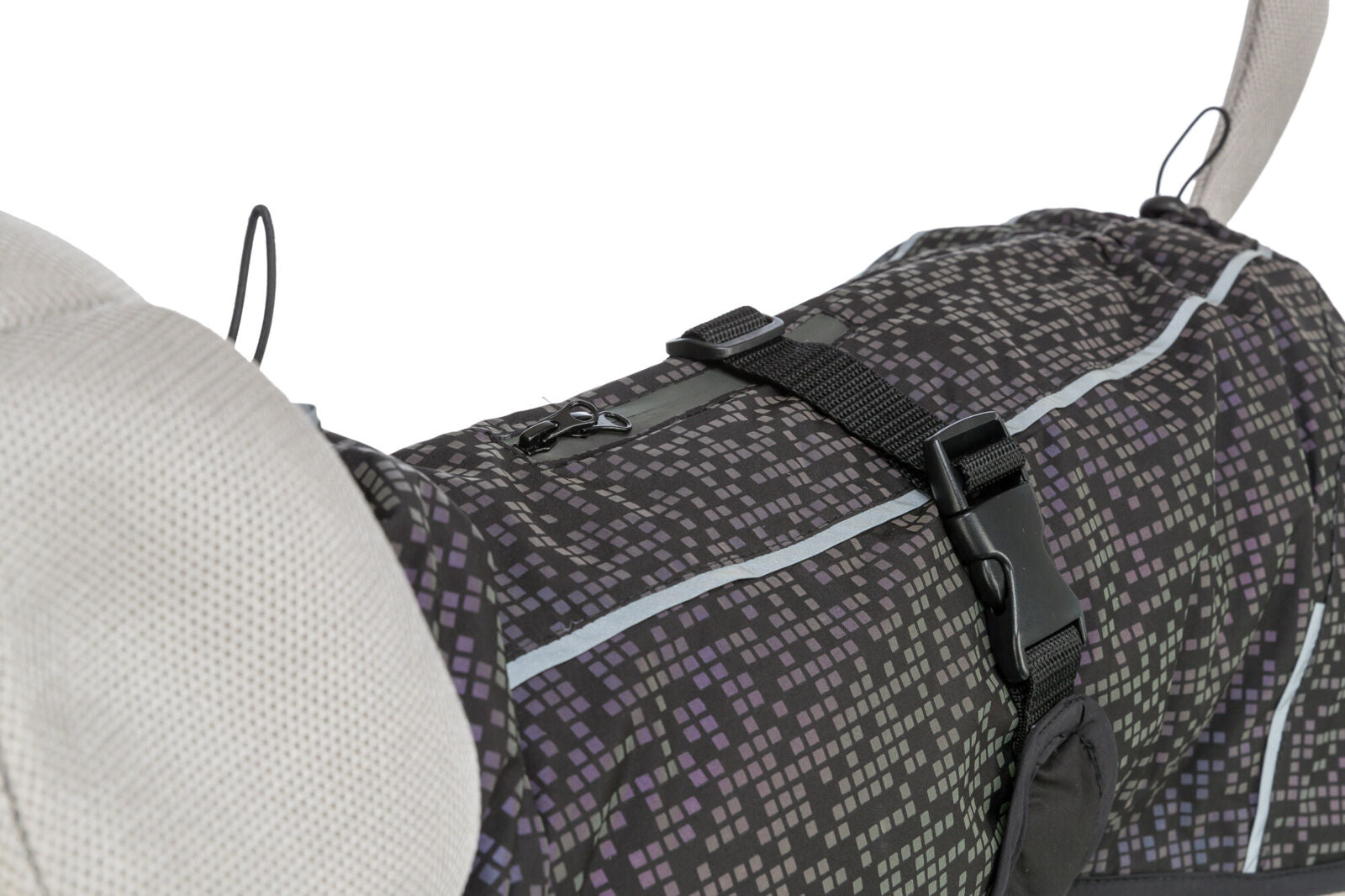 Durch Reissverschluss im Rückenbereich mit Geschirr kombinierbar
