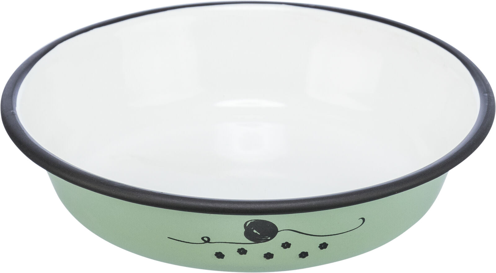 Description Trixie – Napf flach, Emaille/Edelstahl, grün, ø12cm: Praktischer Futternapf im Vintage-Stil