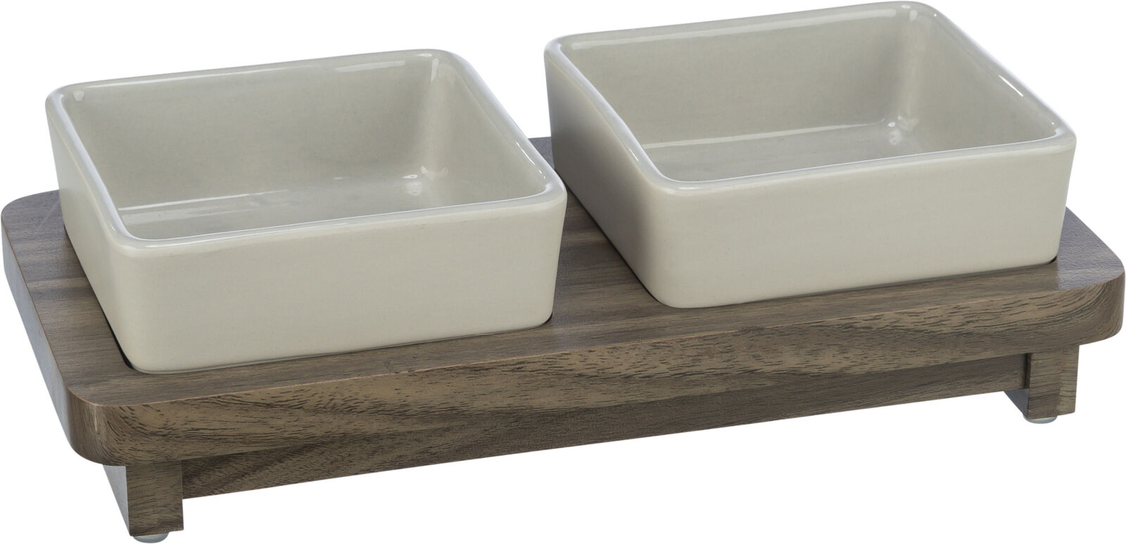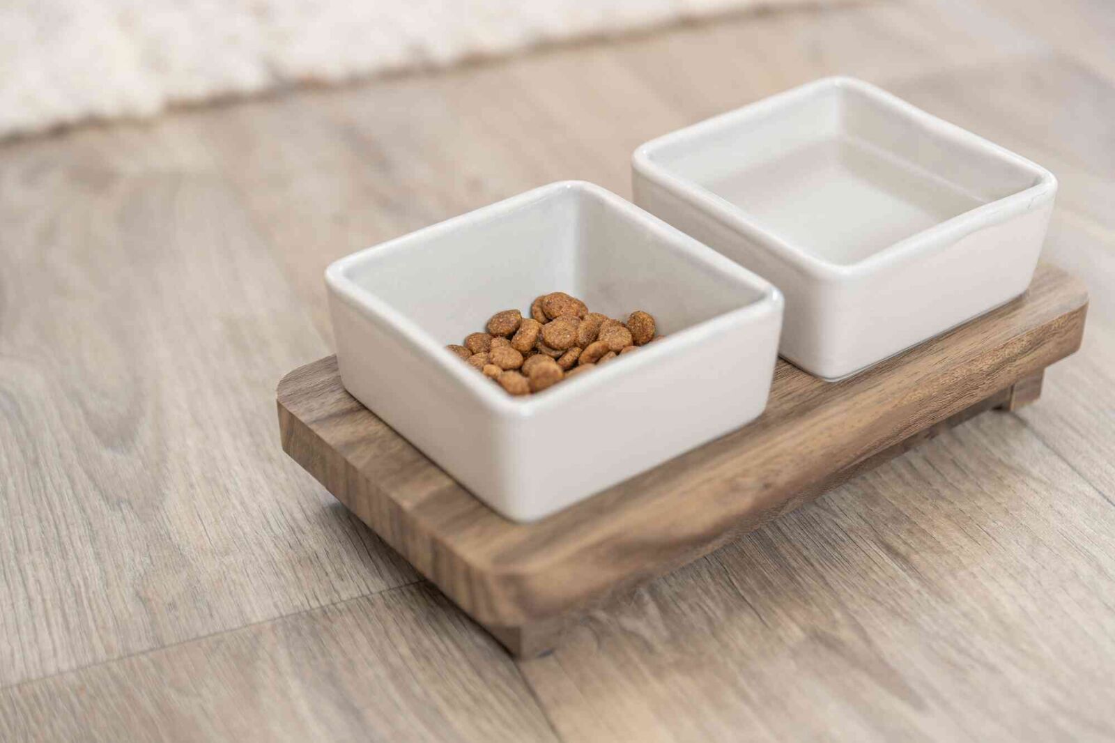 Das Napf-Set wird einfach an einem geeigneten Platz aufgestellt. Die Näpfe können separat befüllt und zum Reinigen herausgenommen werden. Ideal für eine ordentliche und stilvolle Futter- und Wasserversorgung Ihres Haustiers.