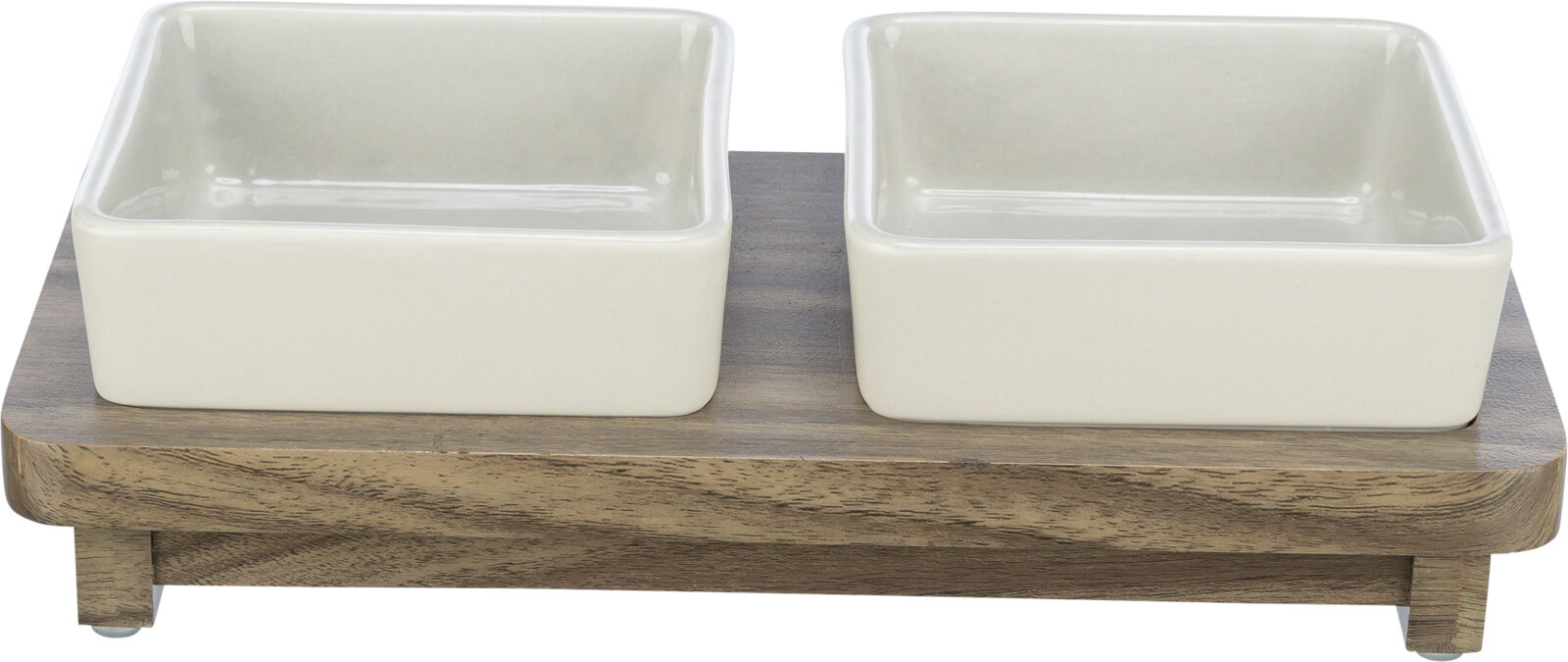 Das Trixie Napf-Set CityStyle kombiniert modernes Design mit praktischer Funktionalität für Ihren Vierbeiner. Die Kombination aus Keramik und MDF sorgt für Stabilität und einen eleganten Look, der in jedem Zuhause gut zur Geltung kommt. Die Schalen sind ideal für Futter und Wasser und leicht zu reinigen.