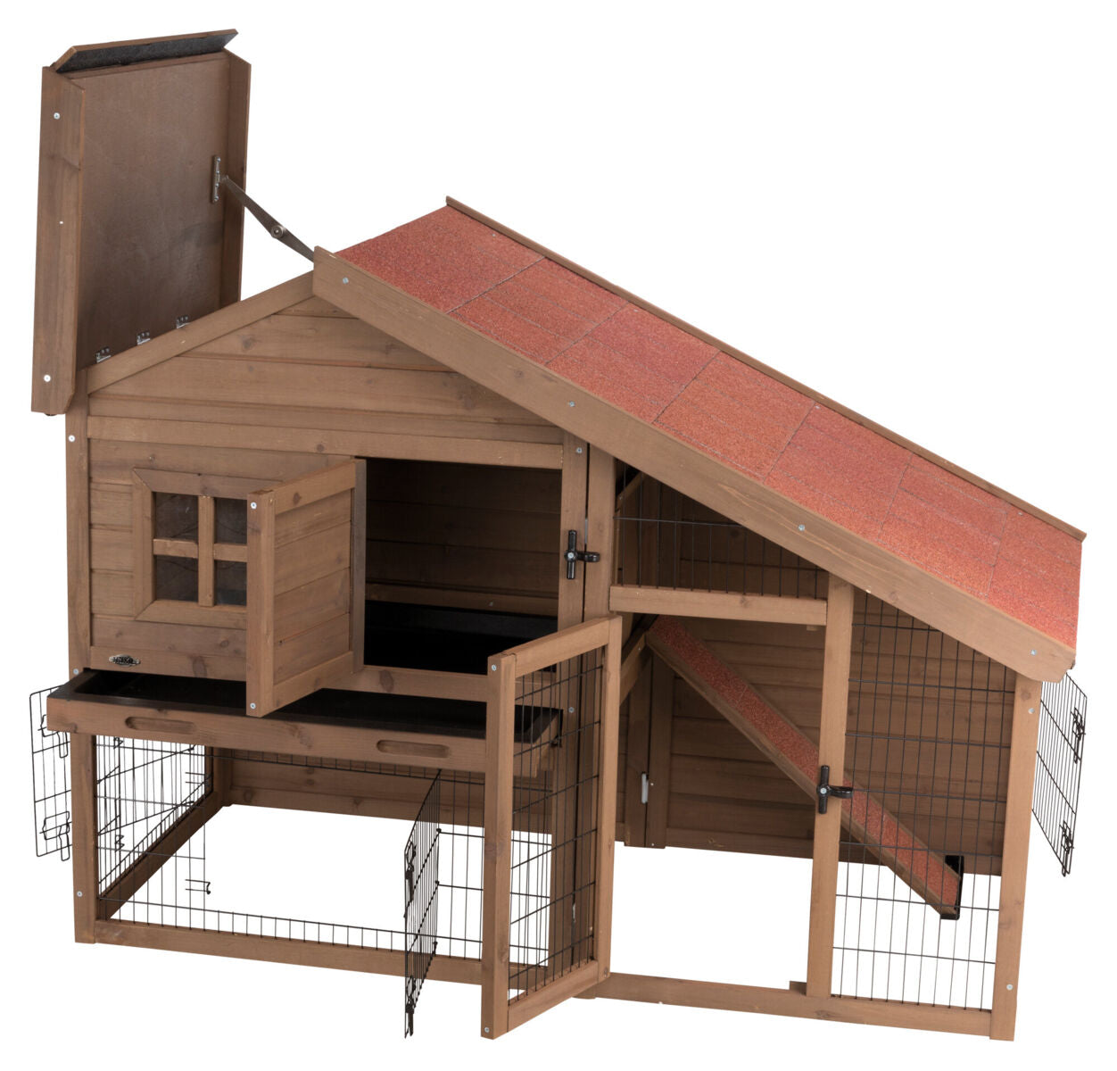Der Trixie Natura Kaninchenstall mit Freigehege in Grösse XL bietet deinen Tieren viel Platz zum Wohnen, Spielen und Ausruhen. Mit integriertem Freilaufgehege, geschütztem Rückzugsbereich und cleverem Stauraum im Dach vereint dieser Stall Komfort, Sicherheit und Funktionalität. Fenster mit Kunststoffscheibe sorgen für Licht im Innenbereich, während die stabile Holz-Metall-Konstruktion für Langlebigkeit sorgt. Ein praktisches Zuhause für Kaninchen und andere Kleinnager, das sich durch durchdachte Details leicht reinigen und erweitern lässt.