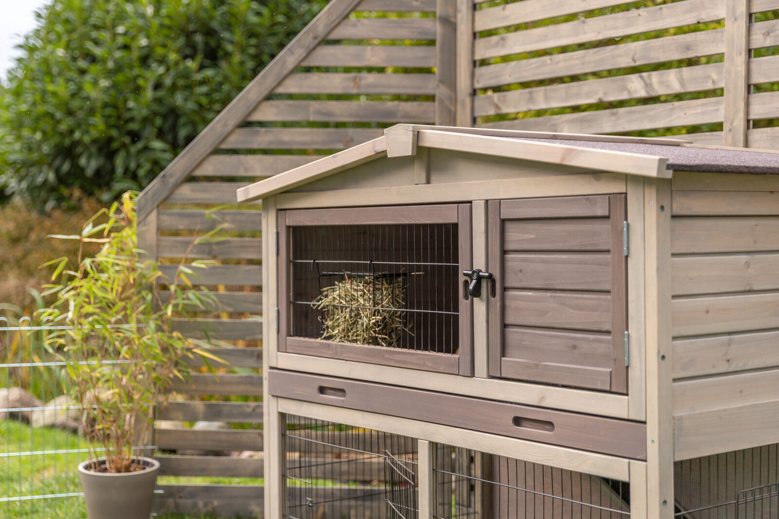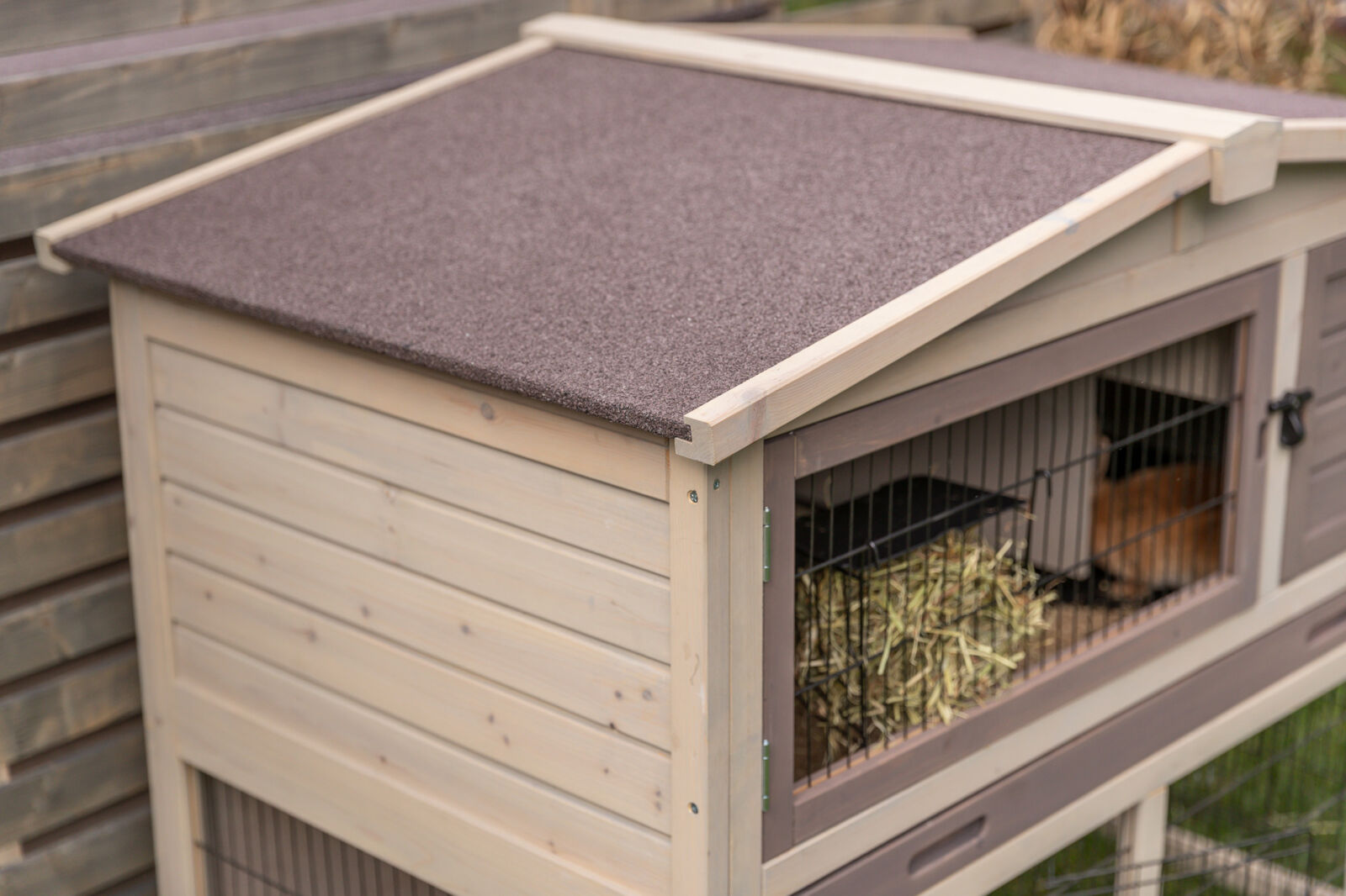 Description Trixie Natura Kleintierstall mit Freilaufgehege, grau/braun: Sicher & komfortabel für Kleintiere