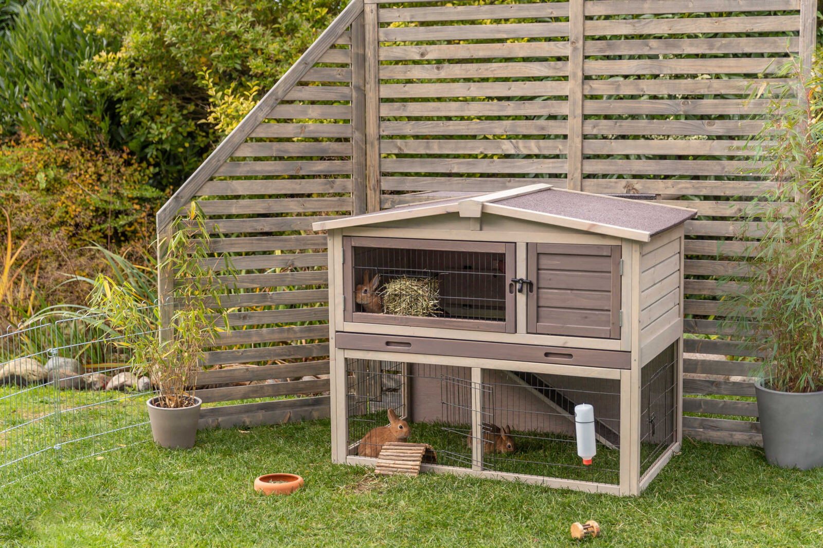 Trixie Natura Kleintierstall mit Freilaufgehege, grau/braun: Sicher & komfortabel für Kleintiere