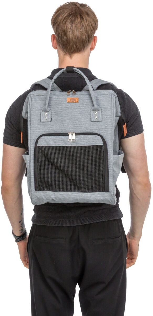 Für den sicheren Transport von kleinen Hunden oder Katzen verwenden. Tier sichern und Rucksack stets aufrecht tragen.