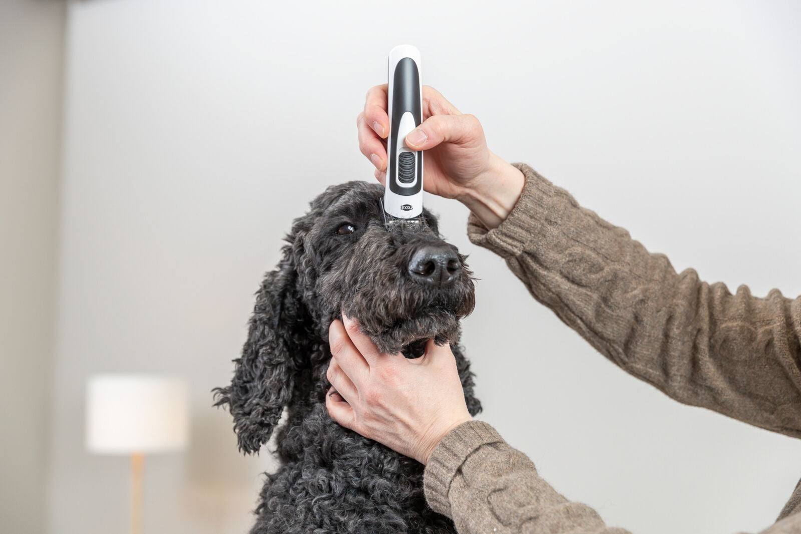 Fell vor dem Scheren bürsten, passenden Aufsatz wählen und Maschine einschalten. Nach Gebrauch reinigen und Klingen ölen.