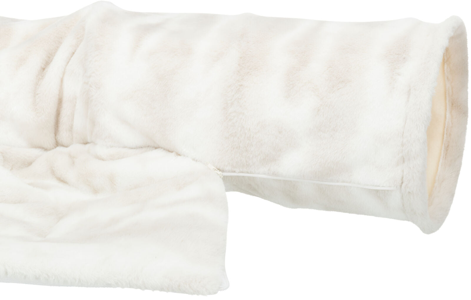 Trixie - Spieltunnel Nelli mit Liegefläche, Plüsch, weiss- Taupe
