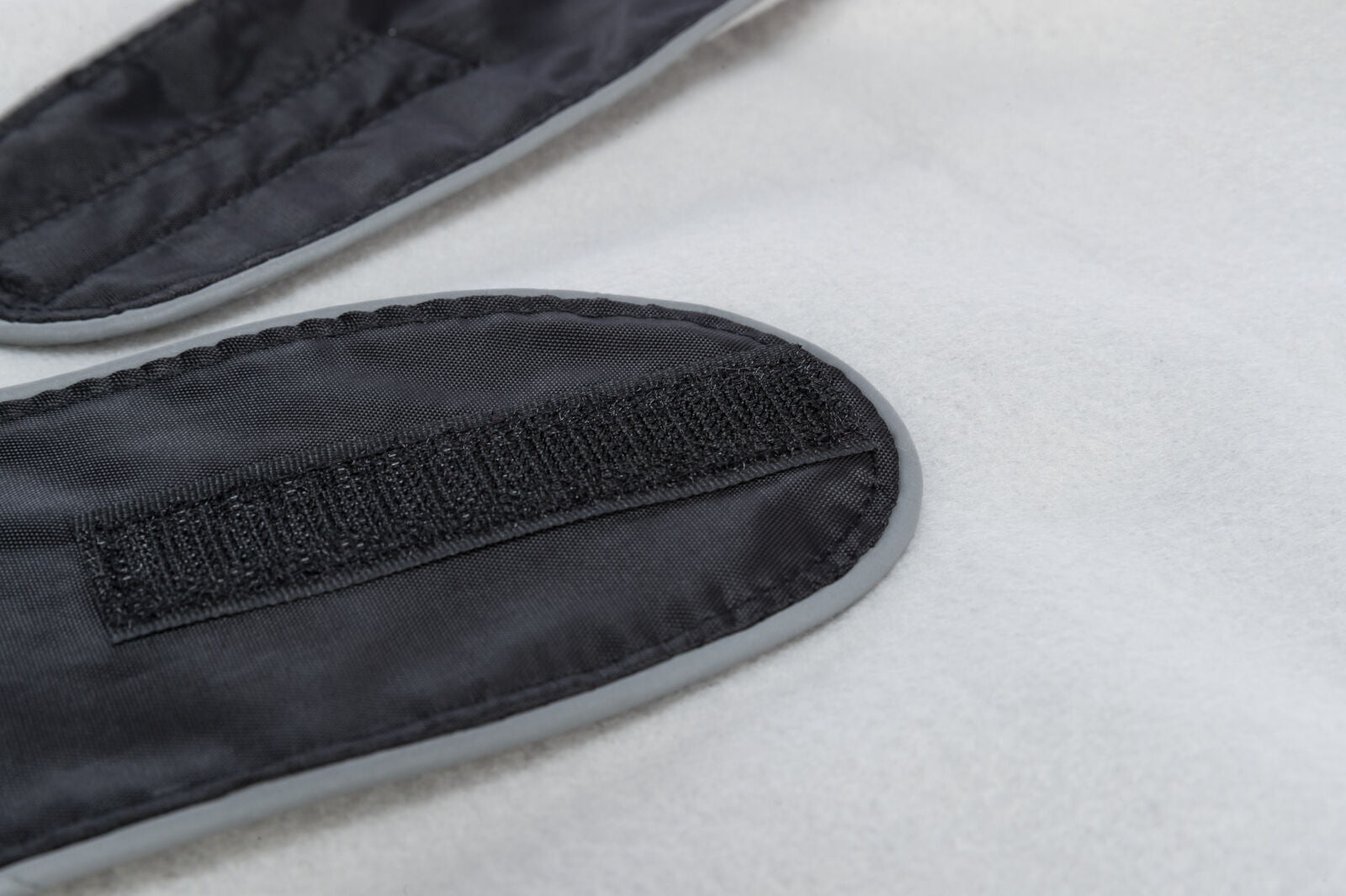 Der Mantel eignet sich ideal für Spaziergänge bei kaltem Wetter und schlechten Lichtverhältnissen. Er wird durch Klettverschlüsse einfach angelegt und bietet dank der Beinschlaufen sicheren Halt, ohne die Bewegungsfreiheit einzuschränken.
