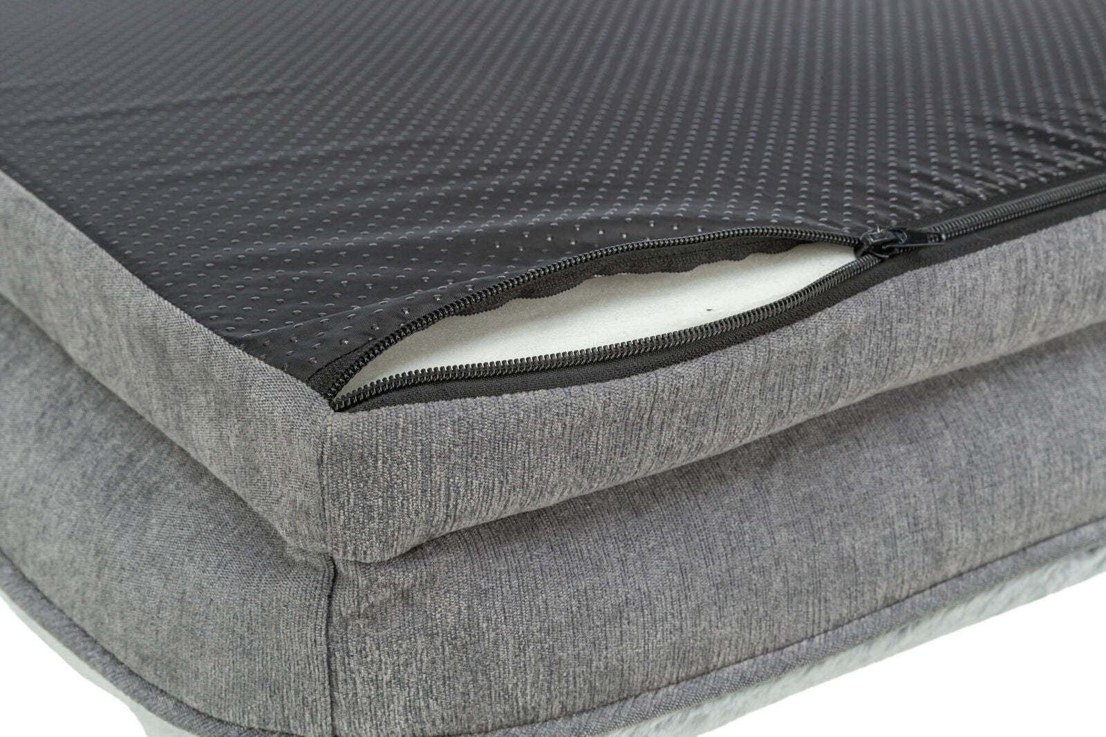 Bezug: 100 % Polyester; Füllung: Viskoelastischer Schaumstoff, Schaumstoffflocken